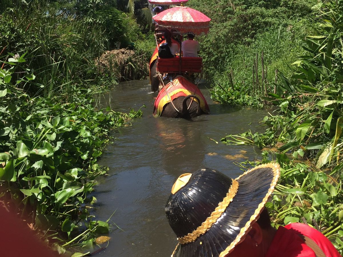象乗り場は象が17頭しかいないところに他のツアーも沢山来ていて、乗るまで少々待ちましたが、象に乗ってる時間は結構長く、ヤシ畑の周りをゆったり散歩し、川に入ったり、細い道を通ったりでとても楽しかったです。