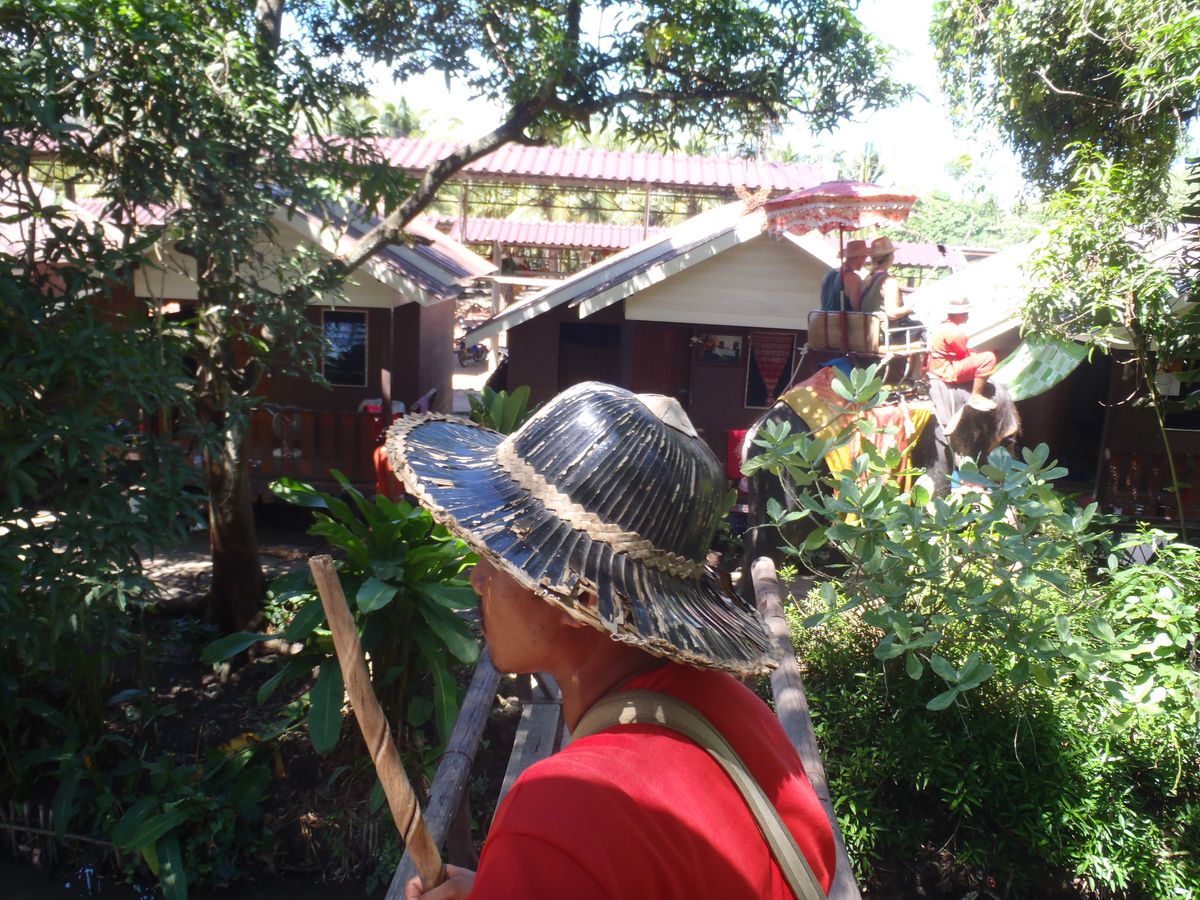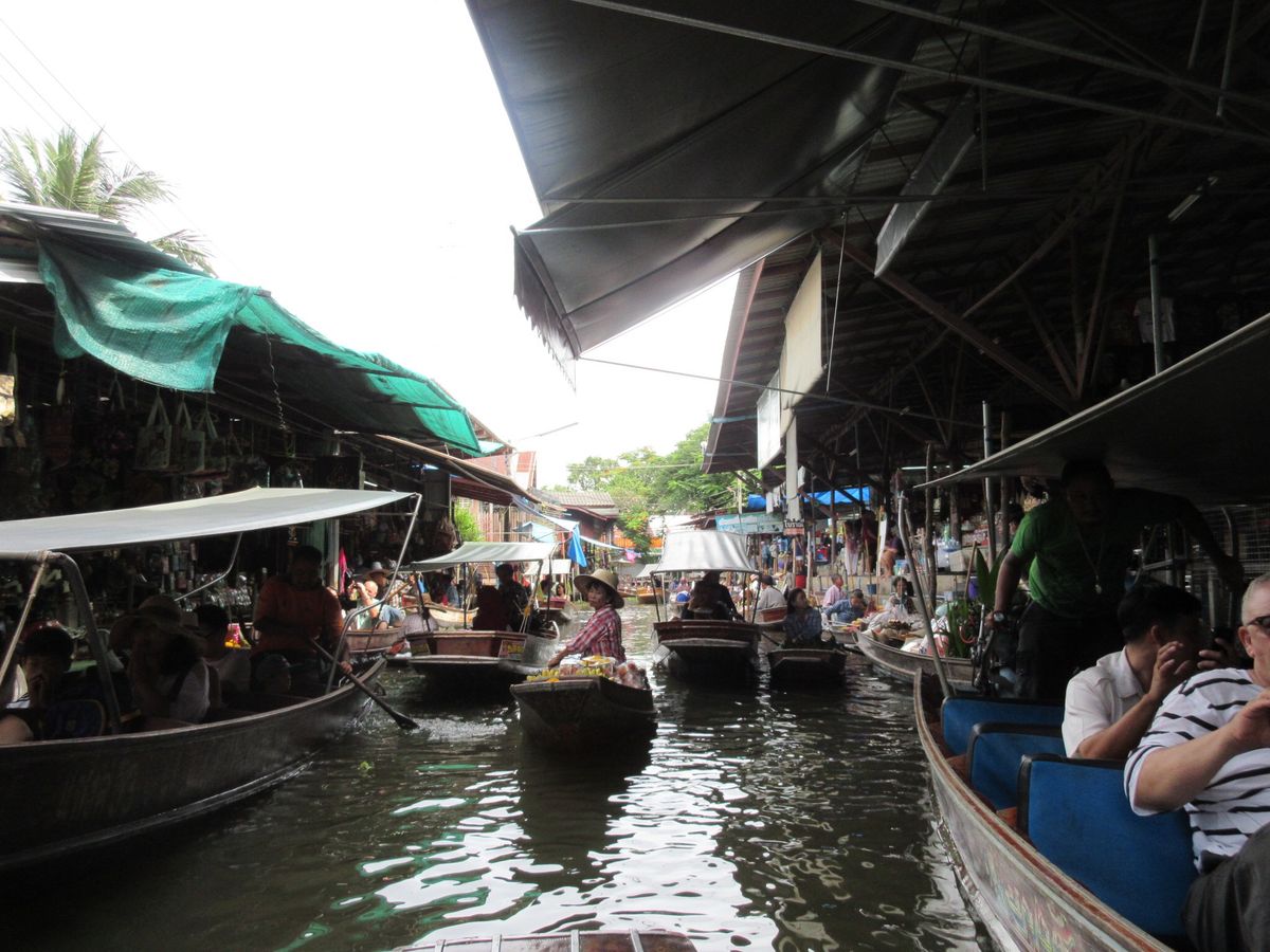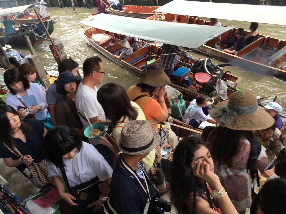 市場もたいへん込み合っていましたが、ガイドさんのリードで手漕ぎボートにはすぐ乗船できました。(別料金で大人200バーツ、子供100バーツ)