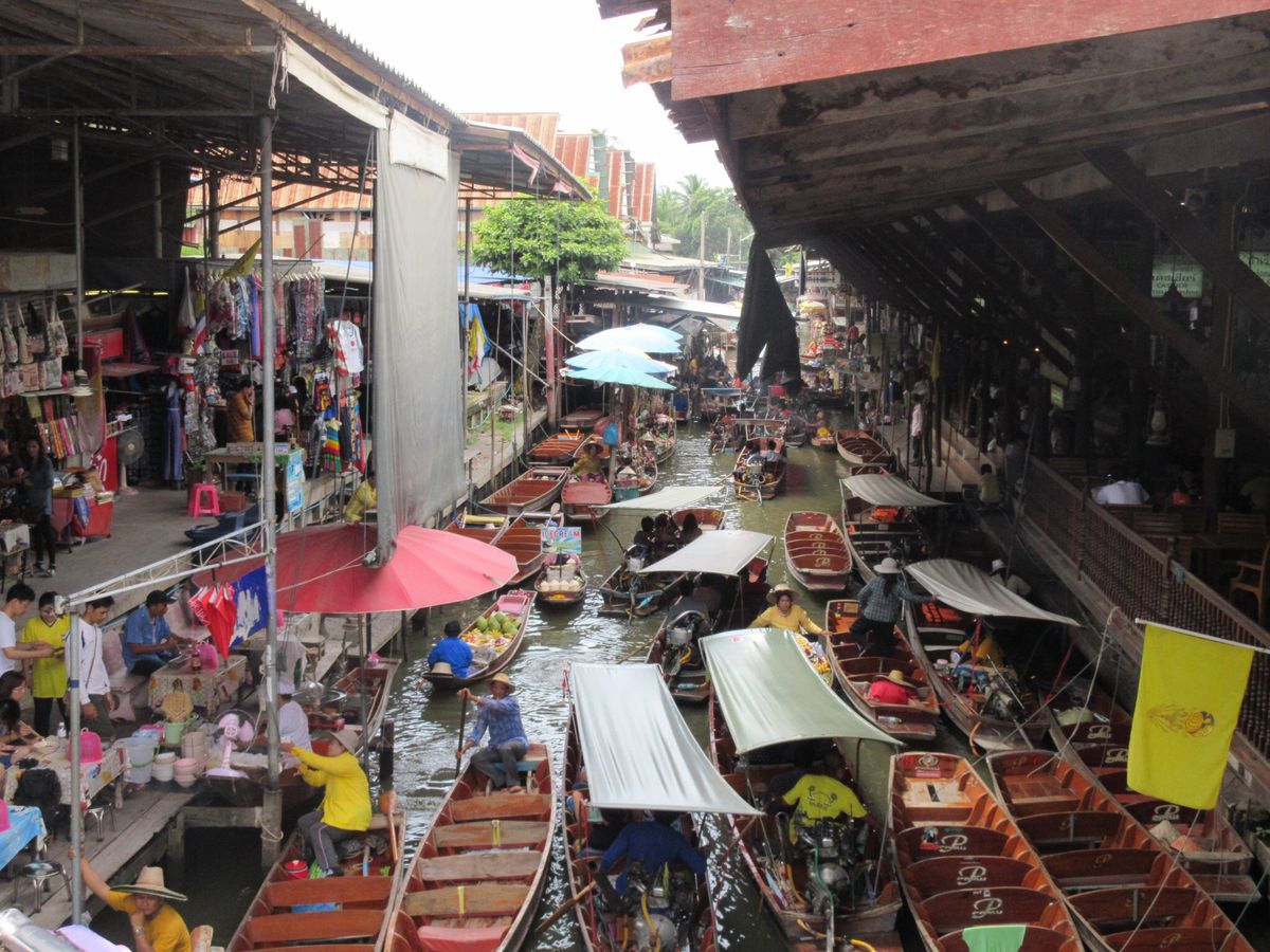 水上マーケットは船で川沿いの土産物屋に立ち寄るツアーですが、大して欲しくない物ばかりですが、値引きのかけひきが面白いのでやって見て下さい。