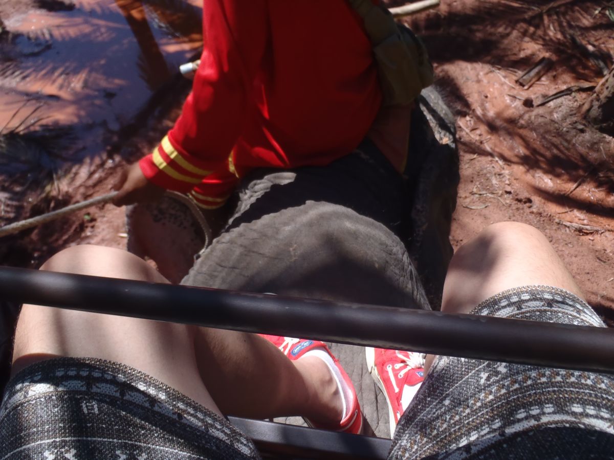 子供たちはもう少し長くもっとジャングルみたいなところを行って欲しかったようです。象の頭の先しか出ないくらいの沼地は進みます。象使いさんが写真を撮ってくれ、良いサービスでした。