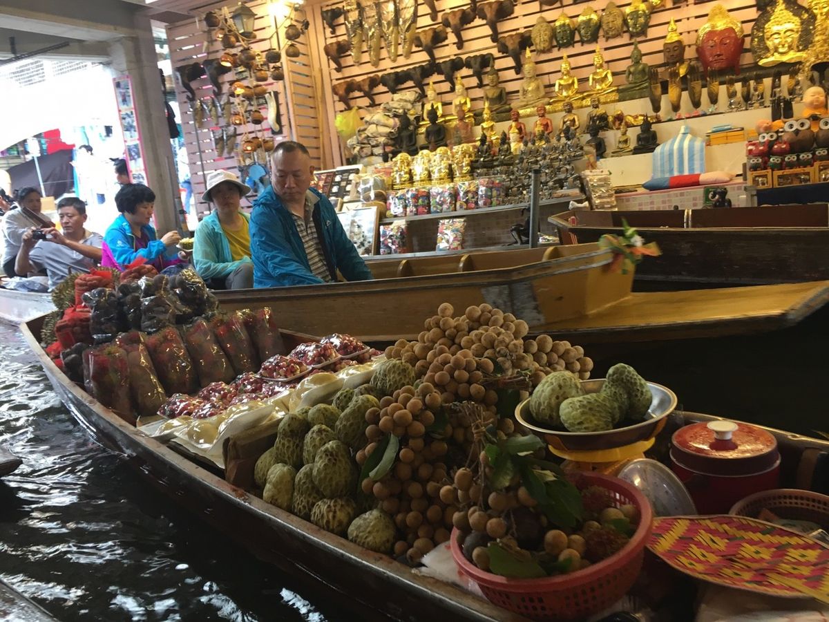 水上マーケットは地元の人のマーケットではなく、観光者向けのマーケットなので売ってる品は割高ですが船に乗って回るとタイっぽくてとても楽しかったです。