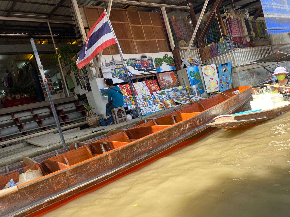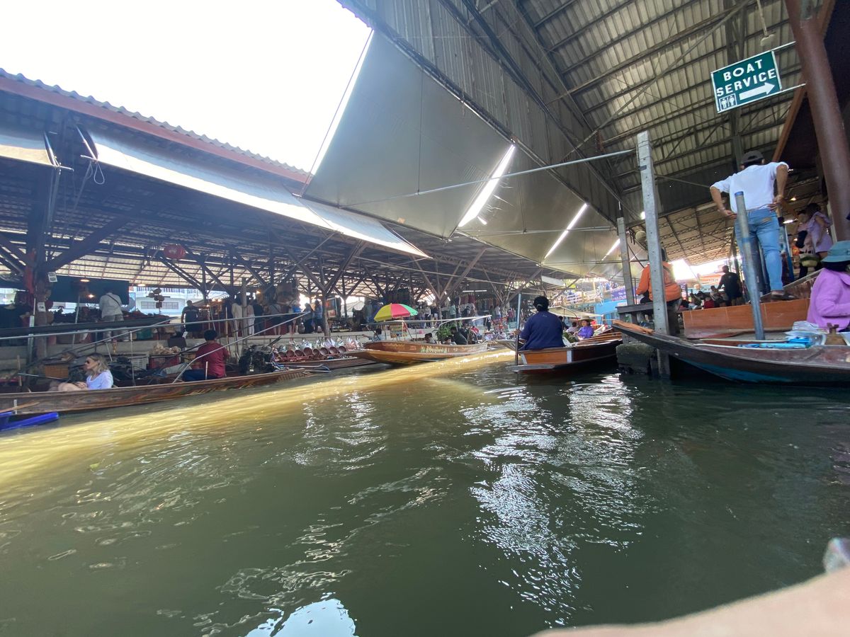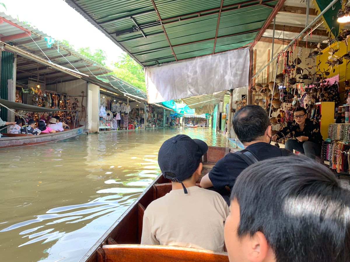 水上マーケットでは追加料金を払って手漕ぎボートで回りましたが、ボートに乗った方が遥かに観光気分を味わえると思います。(買い物はボートにならなくても外周を歩いて帰る場所もあります).