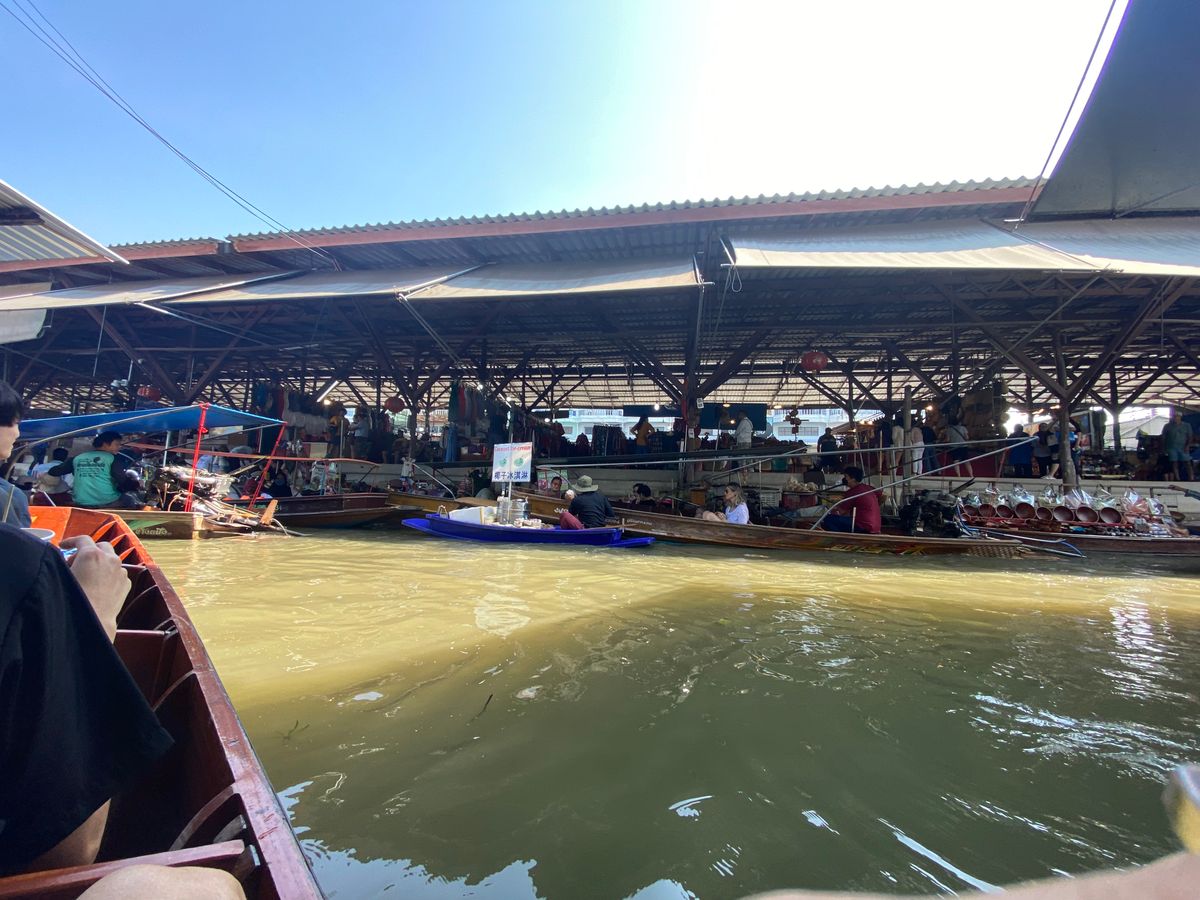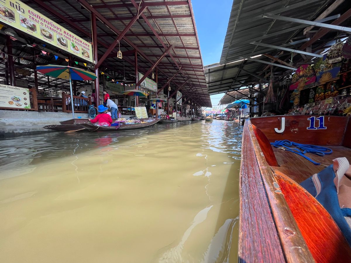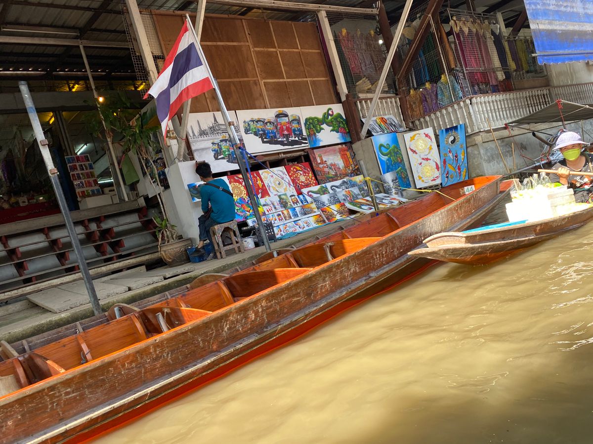 水上マーケットでは追加料金を払って手漕ぎボートで回りましたが、ボートに乗った方が遥かに観光気分を味わえると思います。(買い物はボートにならなくても外周を歩いて帰る場所もあります).