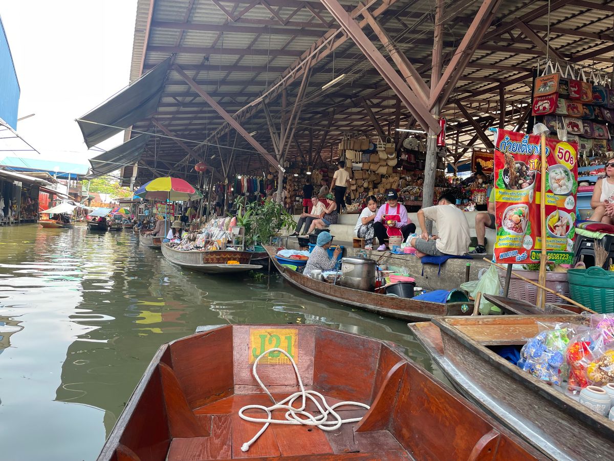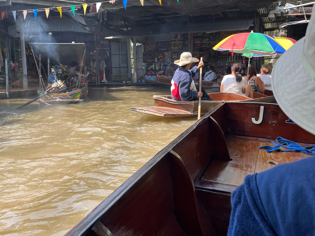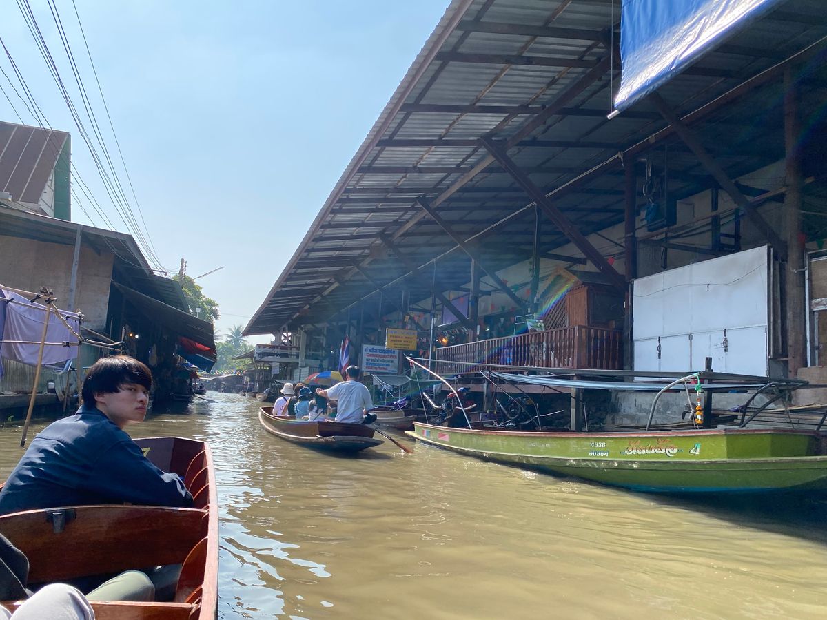 水上マーケットでは手こぎボートが面白い体験でしたが、