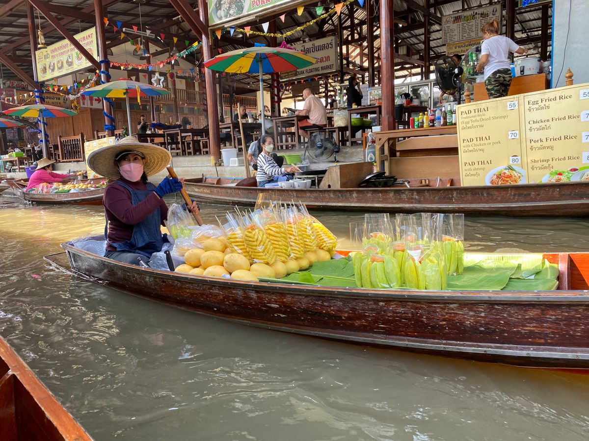 水上マーケットでは、手漕ぎボートになるために事前予約をしてくれていて待ち時間なく乗れた。