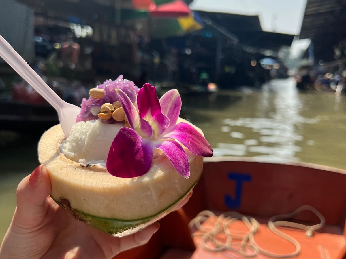 乗船すると、フルーツやココナッツアイスのボートが寄ってきたり、お土産屋に寄ったりと雰囲気を味わうことができます。