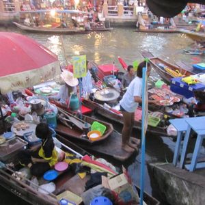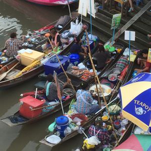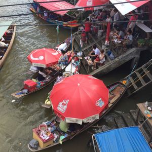 他の水上マーケットが早朝集合だったことと、旅行の日程がちょうど週末だったこと、また子供連れだったことからこちらを選びました。往復共に驚くほどの渋滞には巻き込まれず、わりとすんなり到着。現地は夕方前から結構な人だかりなので小さな子供連れは迷子に注意です。