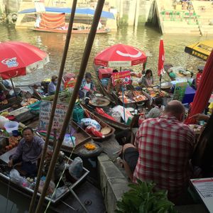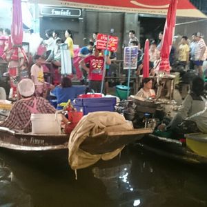 週末限定という「限定」に惹かれて参加しましたが、水上マーケットを楽しみたいのであればメジャーなダムヌンに行けば良かったかなと思います。というのも、規模が小さく賑わいはそれほど、という感じ。水上にもほとんど物売りのボートは出ておらず、また小舟に乗ってのマーケット散策はありません。てっきり小舟に乗って水上屋台の買い物ができると思っていたのでがっかりでした。到着後、ホタルボートの時間まで解散、自由行動!となり、川岸の屋台街で食事をしましたが、時間も持て余し気味に。水上マーケットというより、往復4時間かけてホタルを鑑賞しにいったようなものです。ホタル自体はシーズンではないということで、チラッチラっと一応見られました、という程度。しかも、このホタルボートは個人で参加するならたったの60バーツでした。このツアー、個人的には非常にコスパが悪いと思いました。とはいえ、ここまで自力で来るのはハードルが高いので、仕方ないか。。。また、宿泊ホテルピックアップはとても助かりましたが、夕方ラッシュの時間にスクンビットエリアのホテルをぐるぐる廻るのは非効率と思います。結局、すべてのホテルを回るのに1時間以上かかっていました。それなら集合時刻を後ろにずらして、集合場所を決めた方がそれまで時間を使えて効率的かと。ガイドさんも日本語が微妙で、こちらから質問しないと説明してくれないような方でした。全体的に残念なツアーでした。