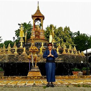 到着した頃凄く天気が悪く、同じツアー参加者の方も気になっていたようで、「雨降っても蛍は見れますか?」「ボートは出るんですか?」と言う質問をガイドさんにされてたんですが、濁した感じの返答をされ、絶対中止になるな…と思った僕は寺院めぐりのボートをチャーターして(500B)今にもスコールが降り注ぎそうな水上マーケットから脱出。そのチャーターボートの船着場の写真にあった寺院に一目惚れして「コレとコレが見たい!あと時間無いから!」とかたことの日本語で告げ後は「OK!OK!」と連れて行かれるがままだったんですが、正直何の情報も無く船に乗り込み後は不安でいっぱいでした…。ボートのおじさんは凄く優しげな人で、入って良いのかも分からない寺院の中まで案内してくれ、一人で来てたので写真もいっぱい撮ってくれるボートのおじさんはほんとありがたかったです、最後まで「高額なチップの要求があるのでは…」と不安はありましたが大丈夫でした。2個目に行った寺院なんてトラはいなかったですが8/13に行ったタイガーテンプルよりサブの動物が多かった…。