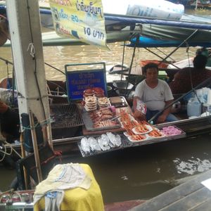 いかを食べましたが、とてもおいしかったです。しょうゆがあれば日本人にはより嬉しい味です。川岸に小さなテーブルが並び、その前に止まる小さなボートからタイ料理をオ-ダ-して食べてみるのも楽しい思い出になるのではないでしょうか。ローカルな感じのレストランから少しおしゃれなカフェまでお店は色々なタイプがありました。