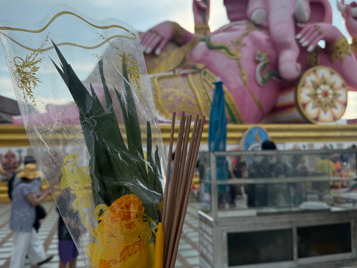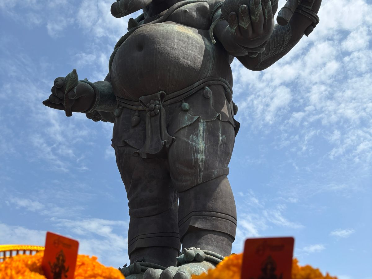 目的地では、あの有名なピンクのガネーシャへ。想像以上にデカい(笑)願いが通常の3倍速で叶うって話、つい全力でお願いしてしまいました。参拝の仕方も現地のスタッフが丁寧に教えてくれて安心でした。