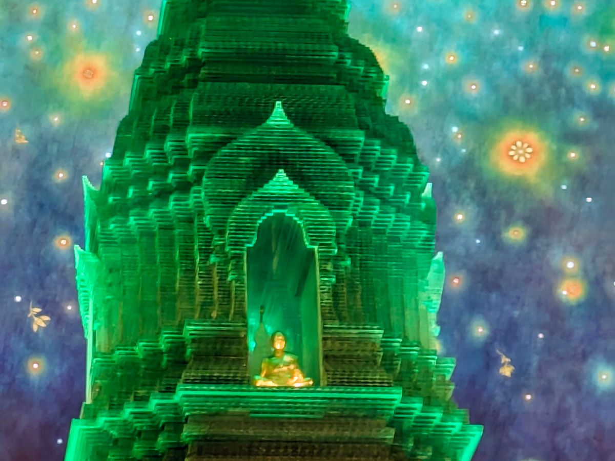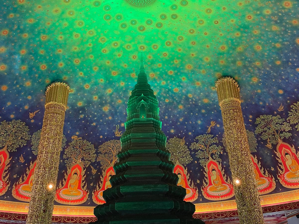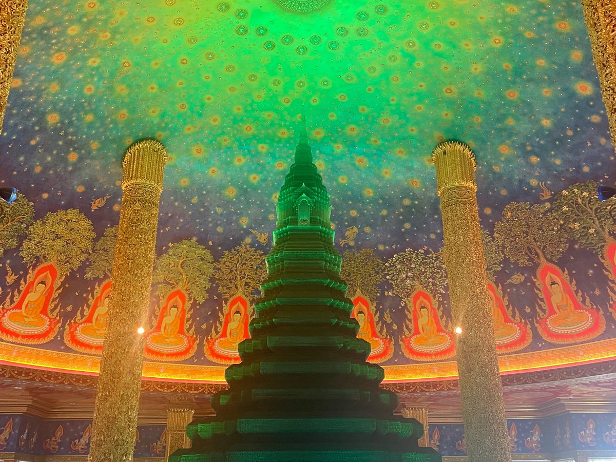 21世紀にはいって建造された比較的新しい壮大な規模の象の像に圧倒され、市内へ戻って幻想的なエメラルド寺院の空間に酔いしれました。