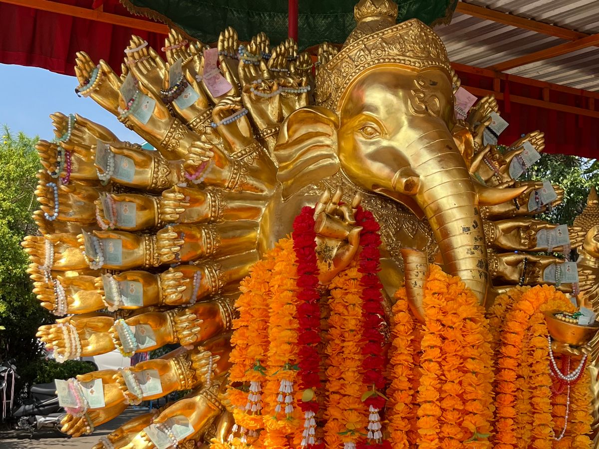 まずはピンクのガネーシャへ。ガイドさんが参拝方法を教えてくれたので、タイ式の参拝を初体験できました。