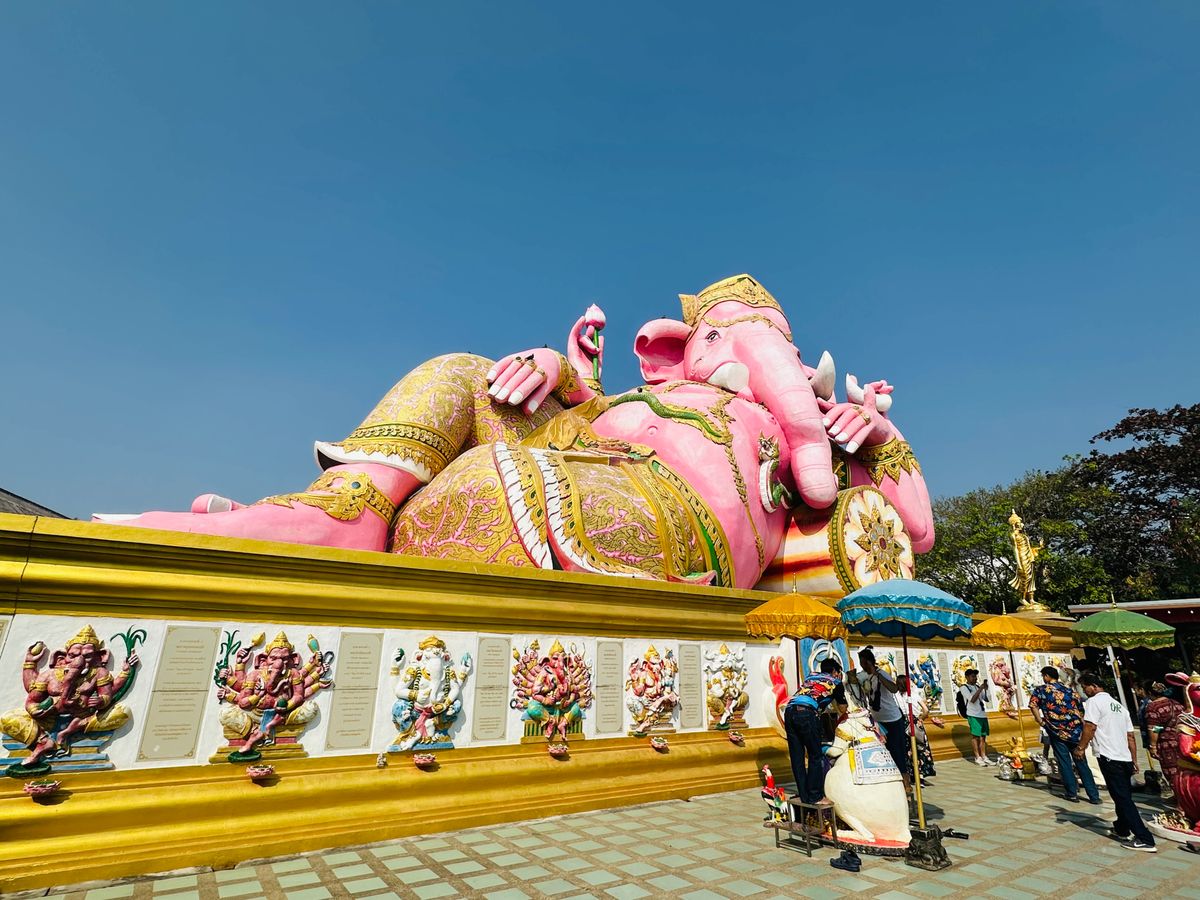 空港からバンコク市内に移動することなく、最初の観光スポット(ピンクのガネーシャ)を訪ねて、効率よく移動できたので長距離移動も苦ではなかったです。