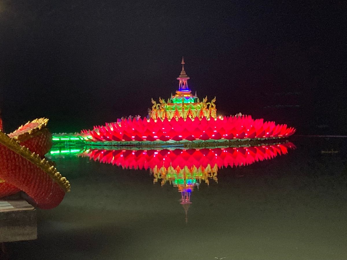 ガイドさんの言う通り、ライトアップされたピンクガネーシャや湖上の構造物(お寺?)は確かに綺麗でしたので、それが見れたのは貴重な経験でした。