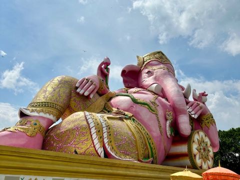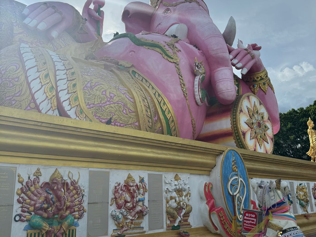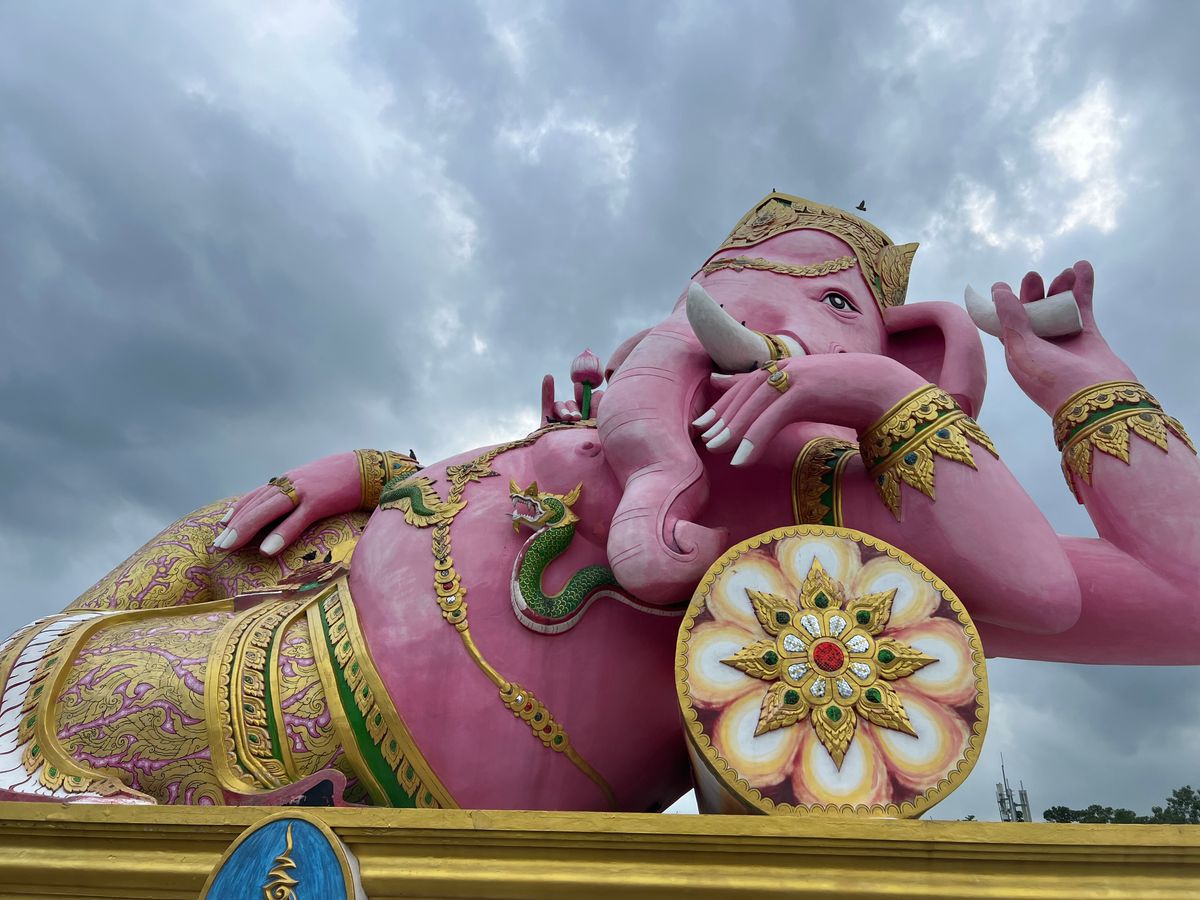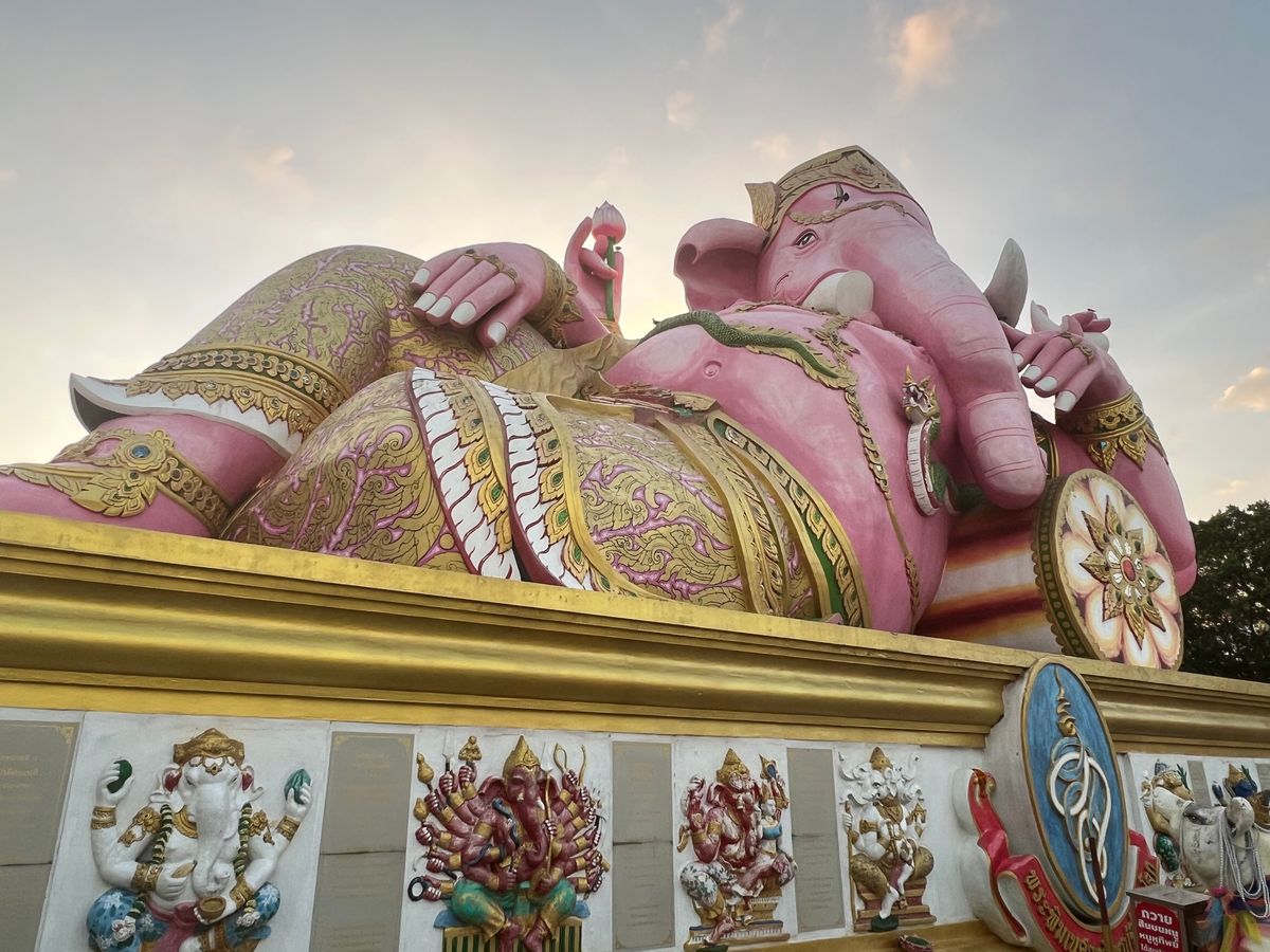 ワット・プローン・アカート、ワット・サマーンラッタナワラームのピンクガネーシャは見ごたえありますよ。ネズミさんたちへ願い事をしましょう。お賽銭も忘れずに!