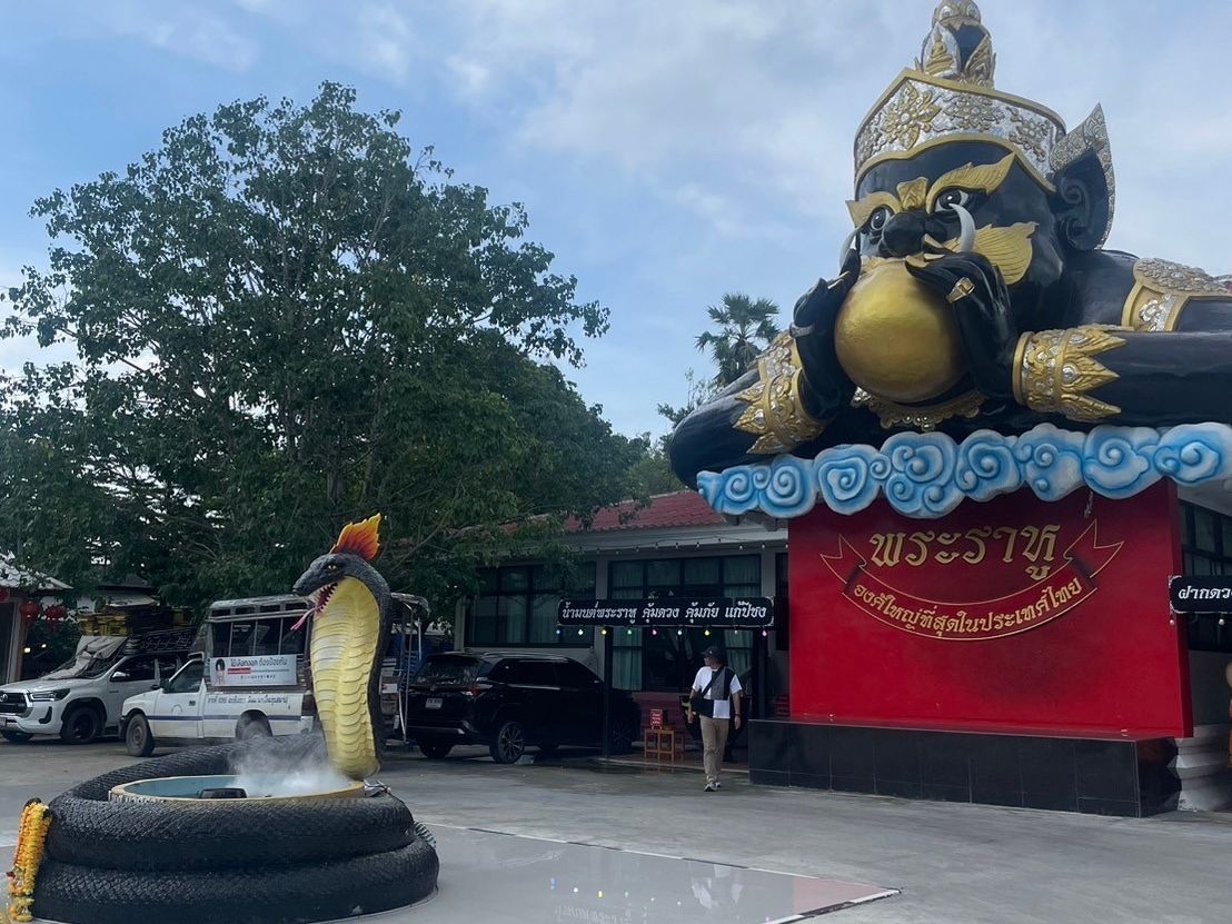 ワット・サマーン・ラッタナーラーム ではピンクガネーシャの他にも見晴らしの良い川や、対になっている大きな龍、ドデカい蓮の花?のような建物があり、思い出作りにはとても良い場所でした。正直それらの写真を撮ってしまえば終わりではありますが、お土産屋さんや軽食を食べられるところもありますので少しは楽しめると思います。