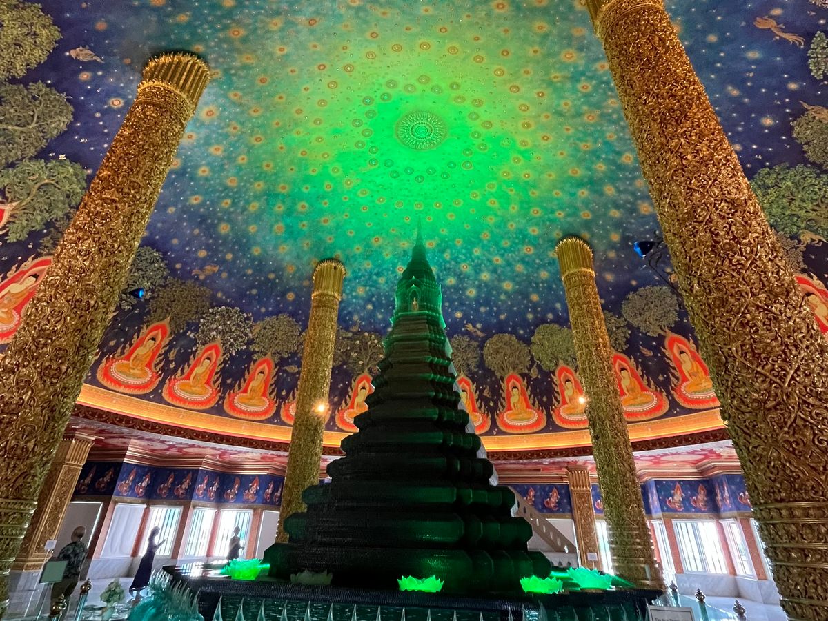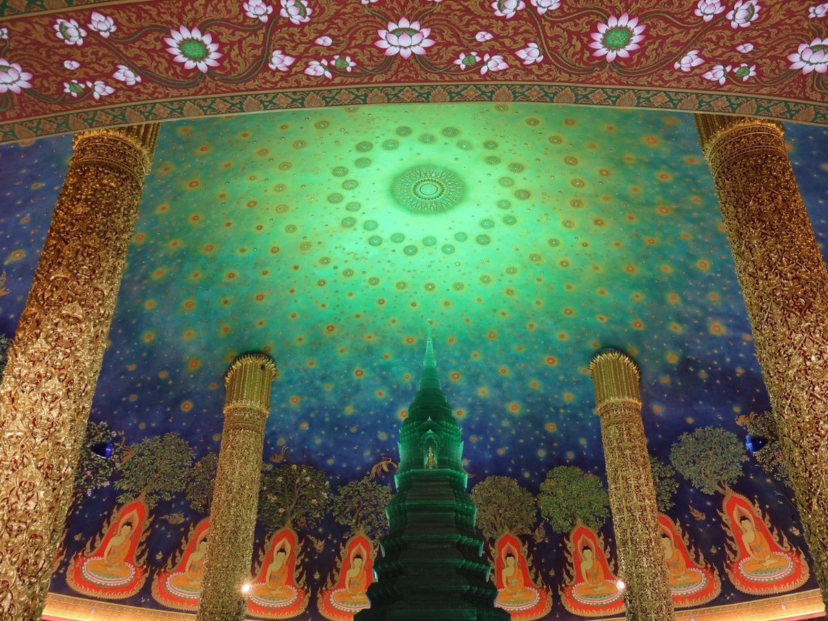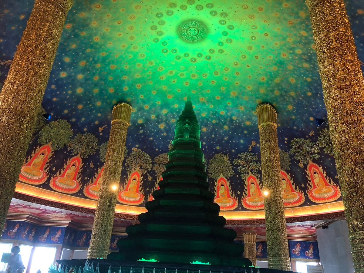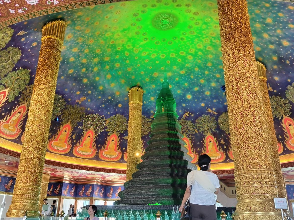 ワットパクナームでは、エメラルドグリーンの寺院に圧巻!とても美しかったです。