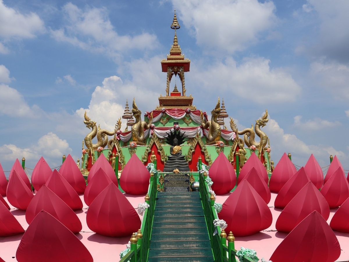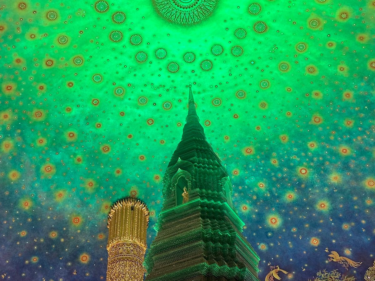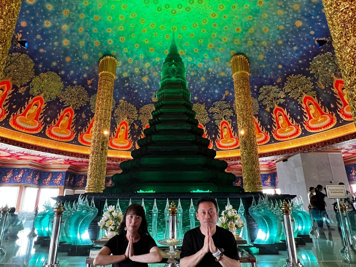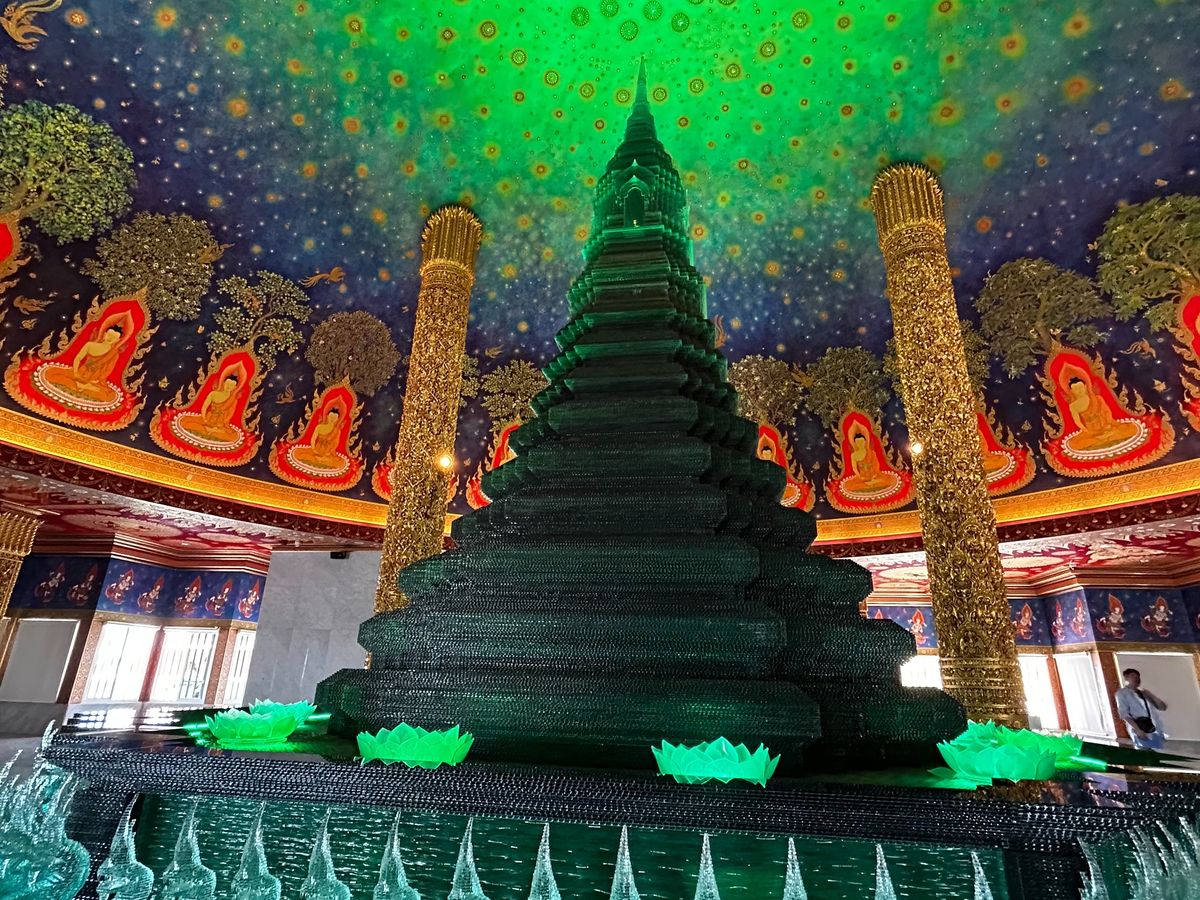 ワットパクナームでは、エメラルドグリーンの寺院に圧巻!とても美しかったです。