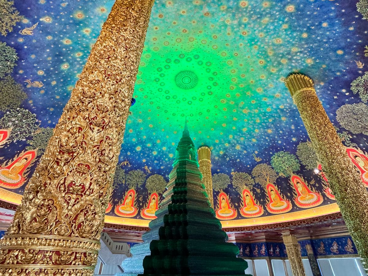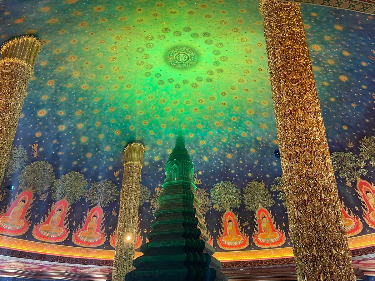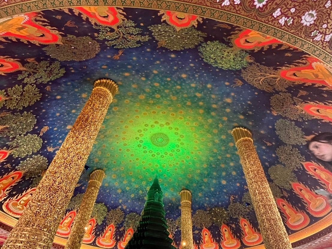 ワット・パークナムでは、最上階に描かれた美しい仏伝図の天井画は圧巻で、たくさんの展示品から歴史的な深みを感じさせてくれました。