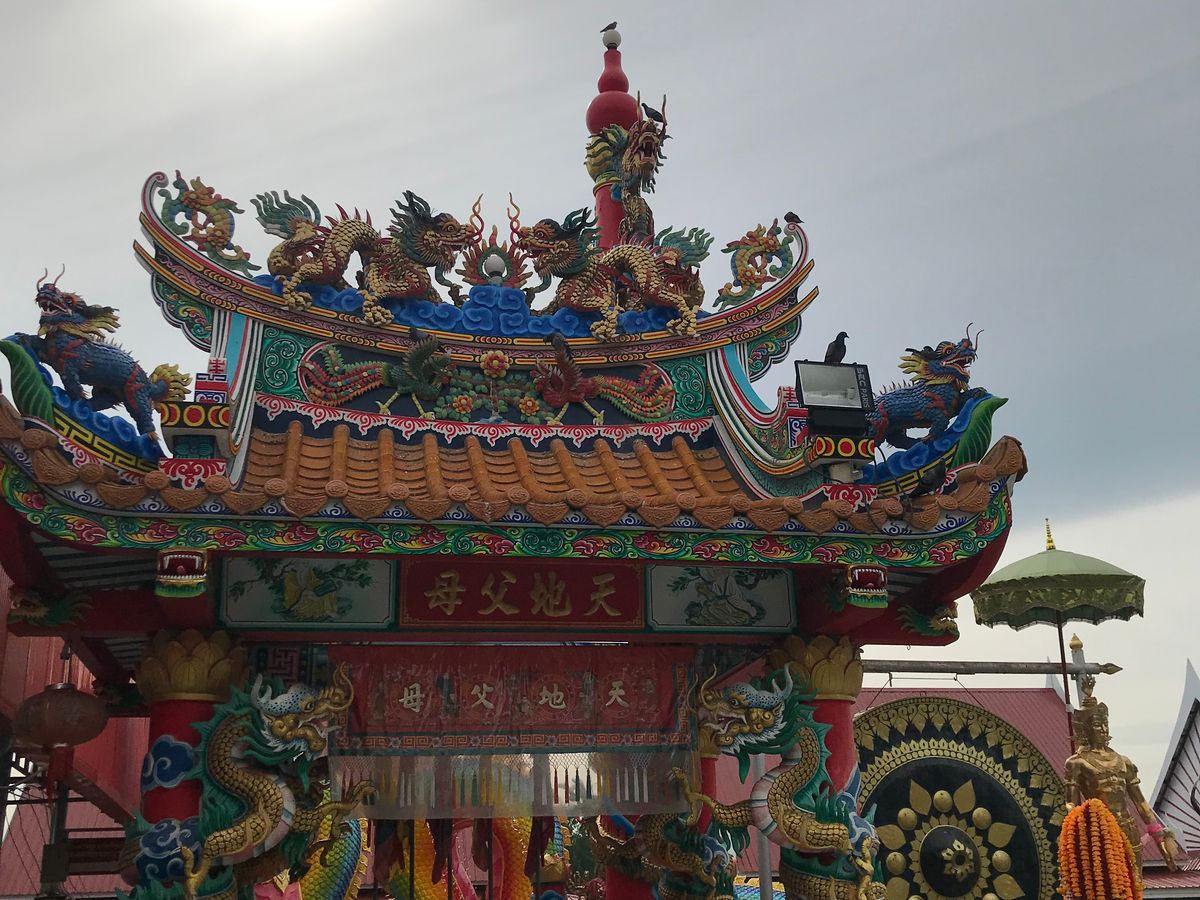 3箇所目のピンクガネーシャは、ガイドさんから願い事の仕方やお参りの仕方を丁寧に教えていただき参拝しました。有名な横たわるピンクガネーシャと2匹のネズミだけでなく、仕事運や子宝の神様、水上に浮かぶ大きな蓮、虹色の龍など多数あり、カラフルで迫力満点、ご利益のありそうなパワースポットでした。ガイドさんの案内のおかげで美味しい屋台グルメも味わうことができました。