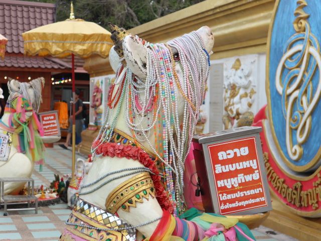 当初自分たちでバスとソンテウを乗り継いで行こうかと考えていましたが、こちらのツアーがお値打ちだなと思いお願いしました。現地に着くとガイドさんが分かりやすくお参り仕方を説明をしてくれます。その後自由時間は1時間しかないのでゆっくりお参りをしたり見学したりするとこが出来ず、遠いだけにやり残した感があり残念。せめて2時間有ればたっぷり見て回ることができたのかなと思いました。