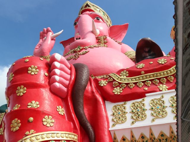 ピンクガネーシャはとても大きく感動しました。寺院には、ガネーシャ以外にもいろいろあって、ある意味カオスでしたが、それはそれでおもしろかったです。
