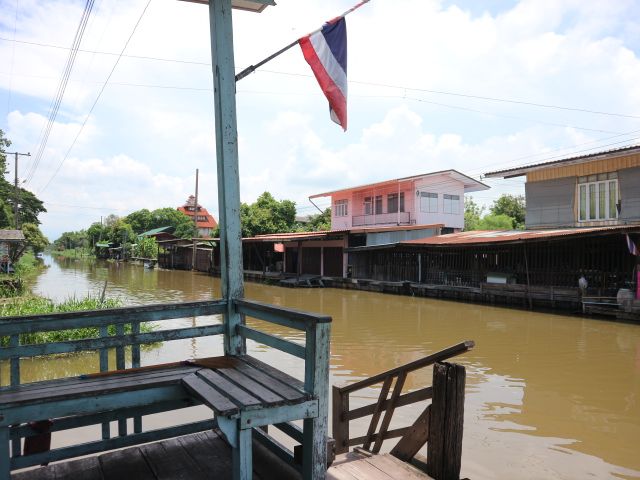 2箇所目の市場は、歴史ある市場の様子や現地の人々の暮らしが間近で見られたことが興味深かったです。ここはタイでイメージするいわゆるカラフルポップな映えマーケットとは違うかもしれません。私はこの日までに流行りのマーケットを沢山見たので逆に目新しく、店先の奥に見えるお宅のリアルな暮らしぶりや、昔使われていたと言う川辺に浮かぶ古い市場の建物、おばちゃん達が作る現地の屋台グルメ(ちょっと食べる勇気は出なかったですが)、生活用品や野菜が所狭しと売られている様子、古い市場ならではの埃っぽさとごちゃごちゃ感が面白いと感じました。平日は閉まっているお店が多く閑散としていましたが、自力では行かないスポットが見られて良かったです。