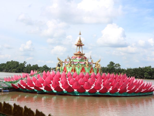 8/7に家族で参加しました。ホテルから1時間半と遠かったですが、ピンクのガネーシャにお祈りすることができて良かったです。次のワット・パクナムはガイド本の通り、スワロフスキーが散りばめられた天井が素晴らしく綺麗で極楽浄土のようでした。そこにいた警備員さんがインスタグラマーのような素敵な動画を撮ってくださり、想い出になりました。勿論チップをお支払いしました✨バンコクから遠いですが見る価値ありだと思います!