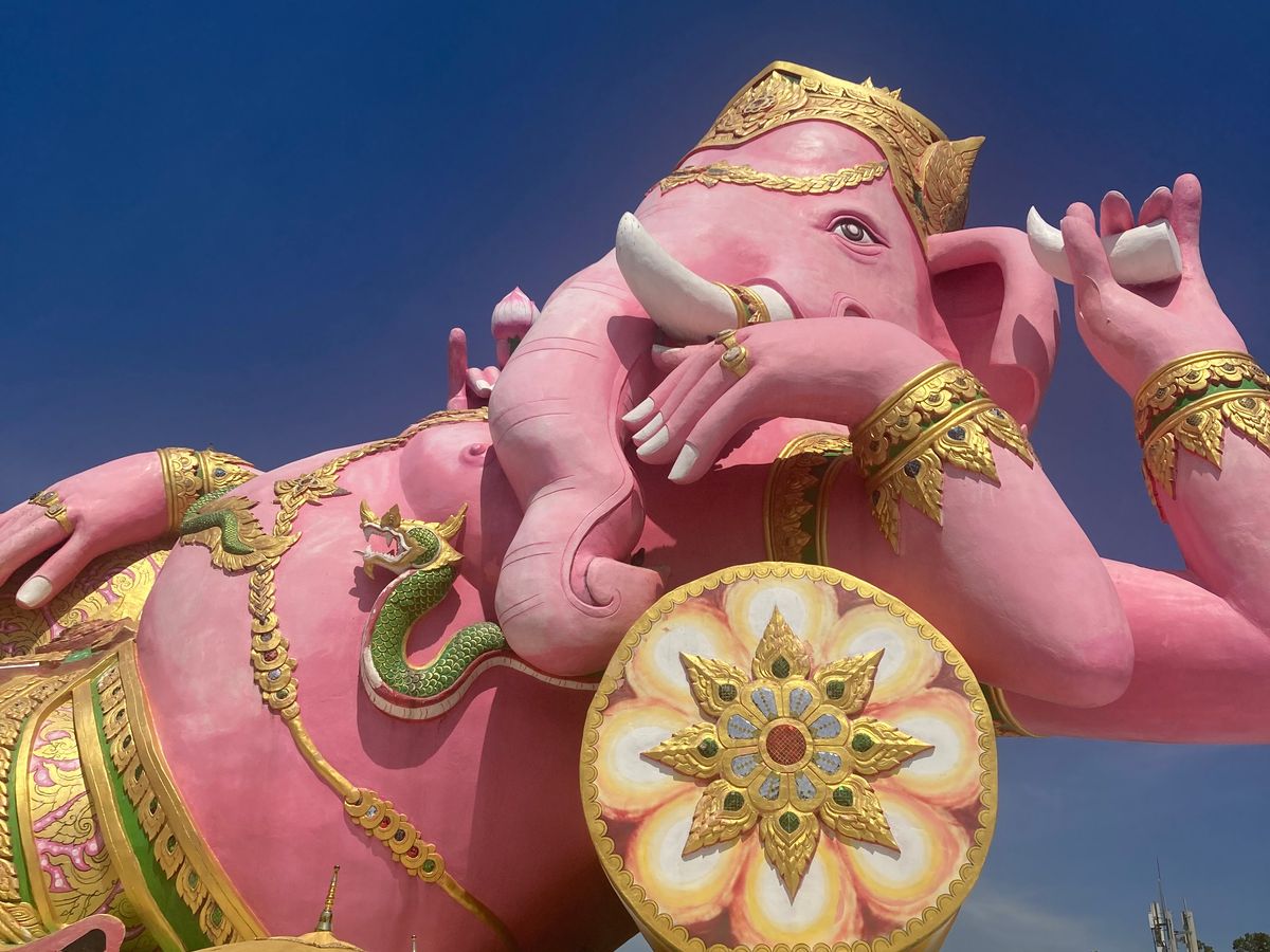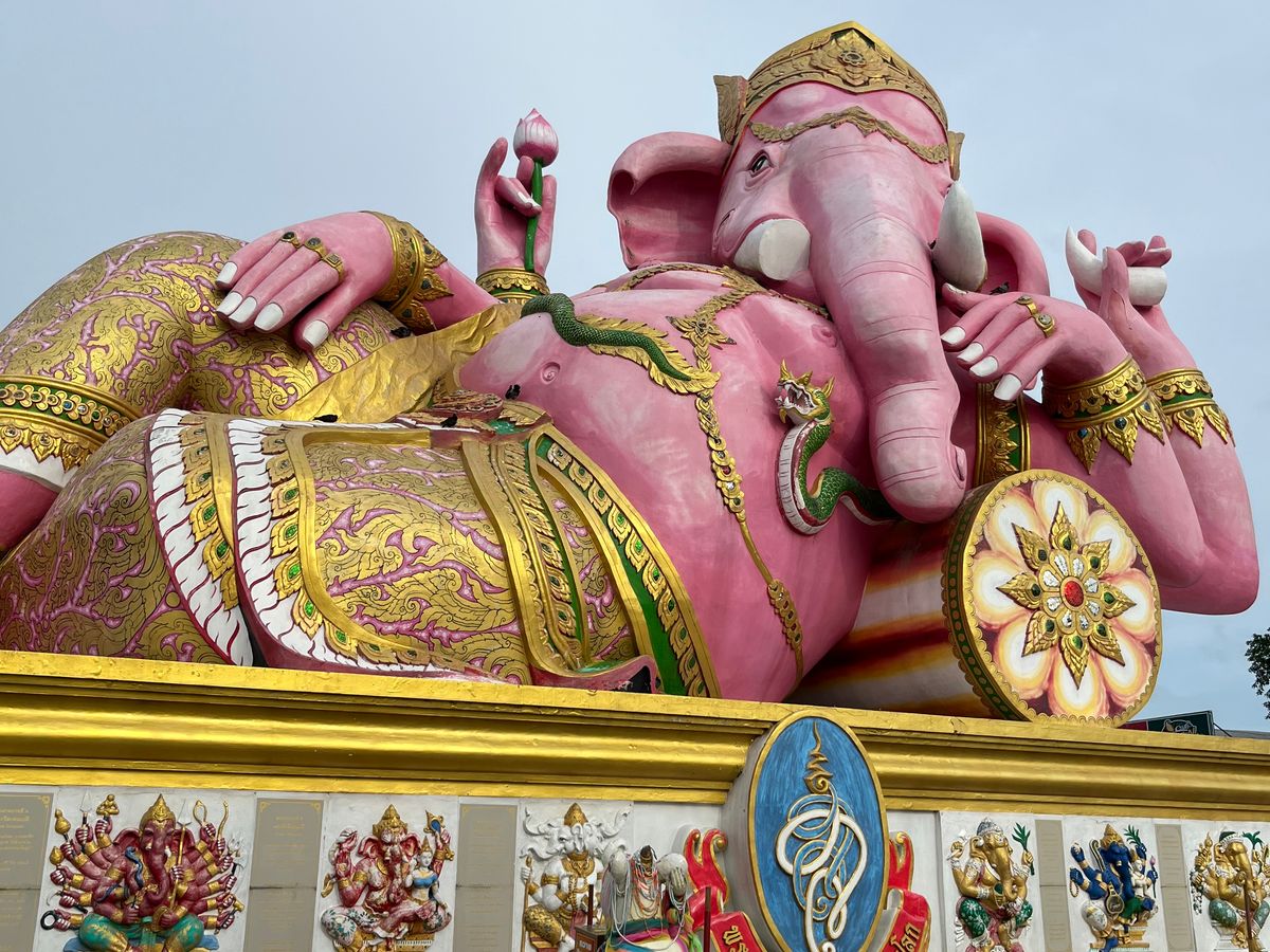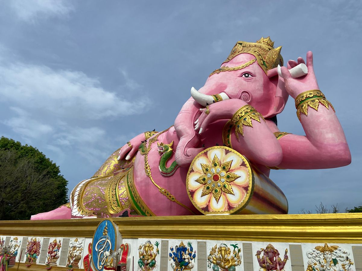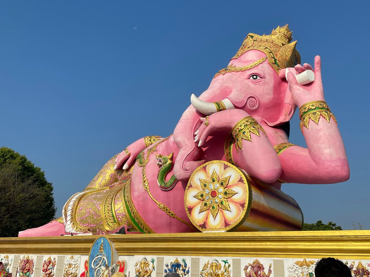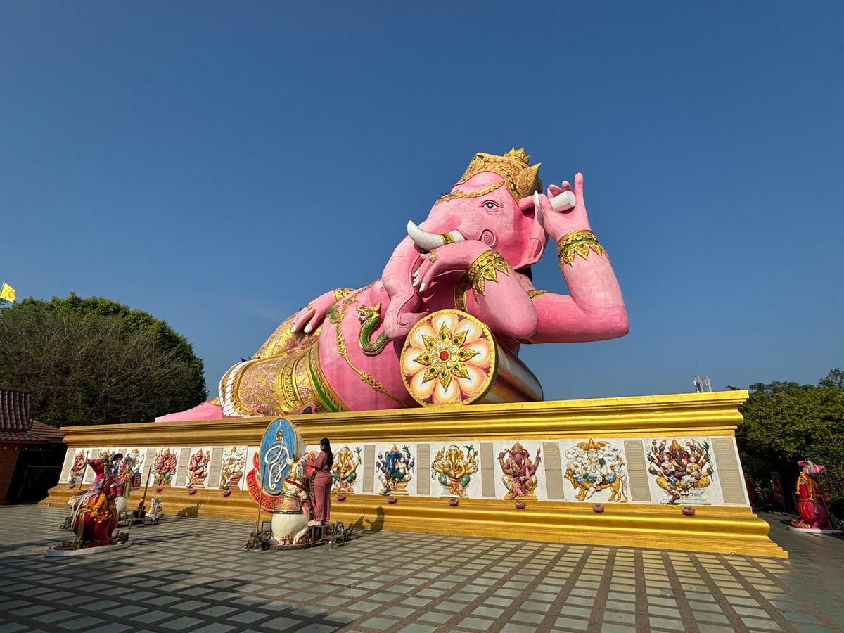 ピンクのガネーシャとワットパクナムはガイドブックにも載っている、とても美しいポイント。