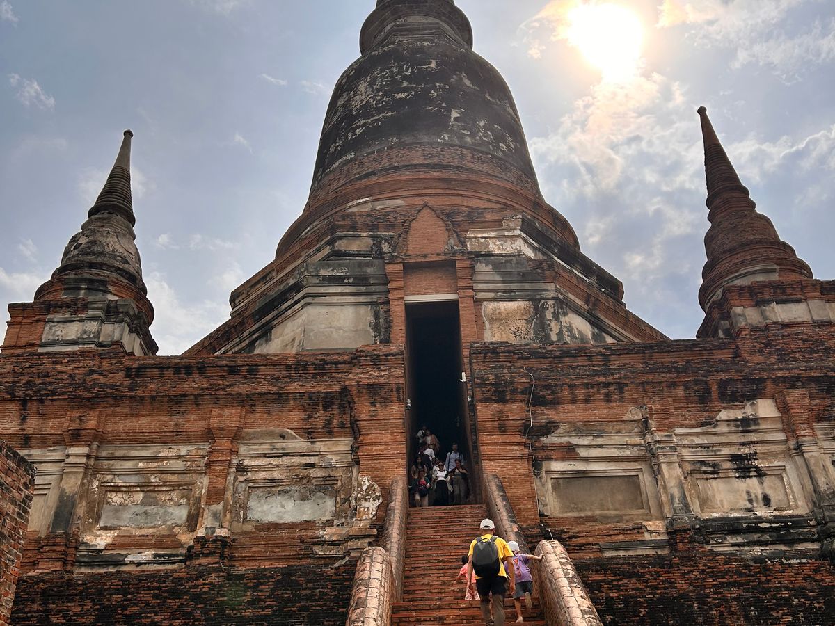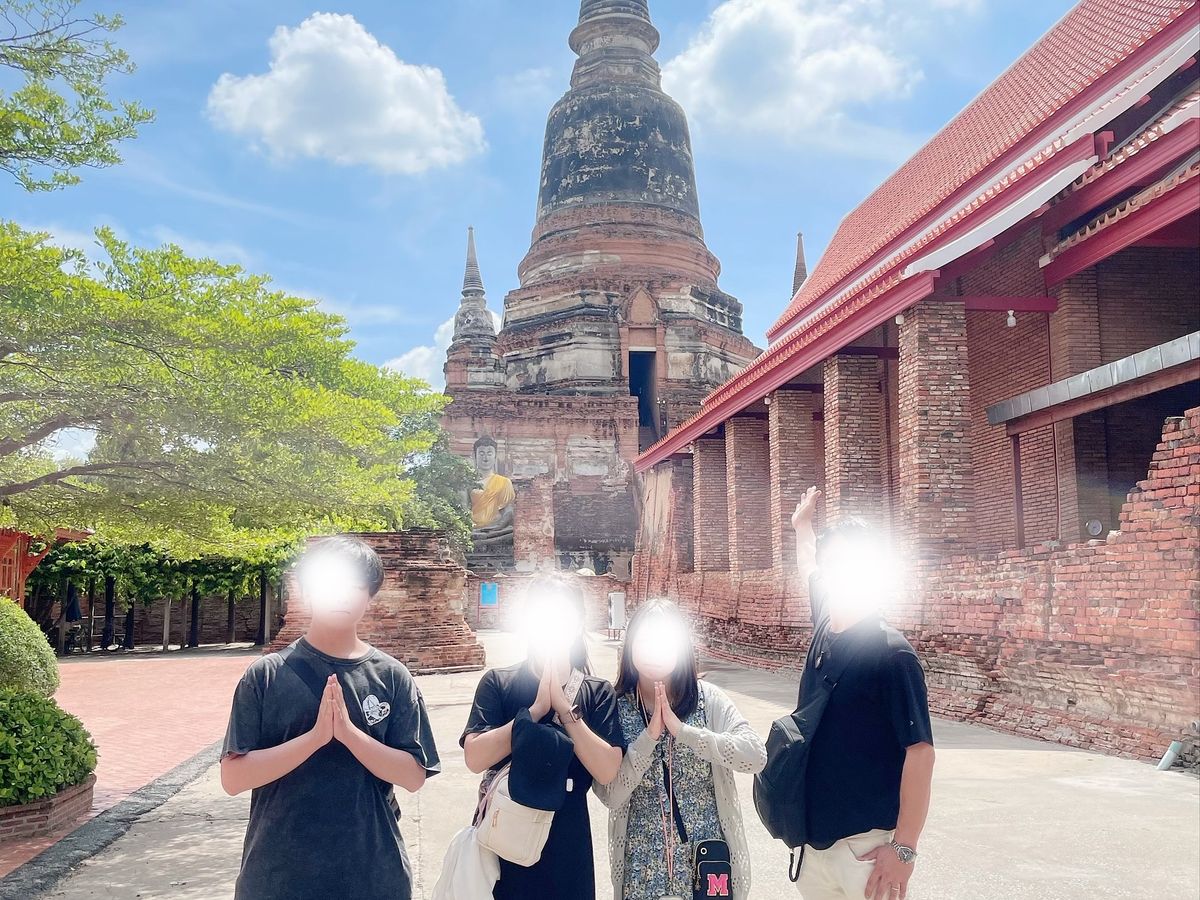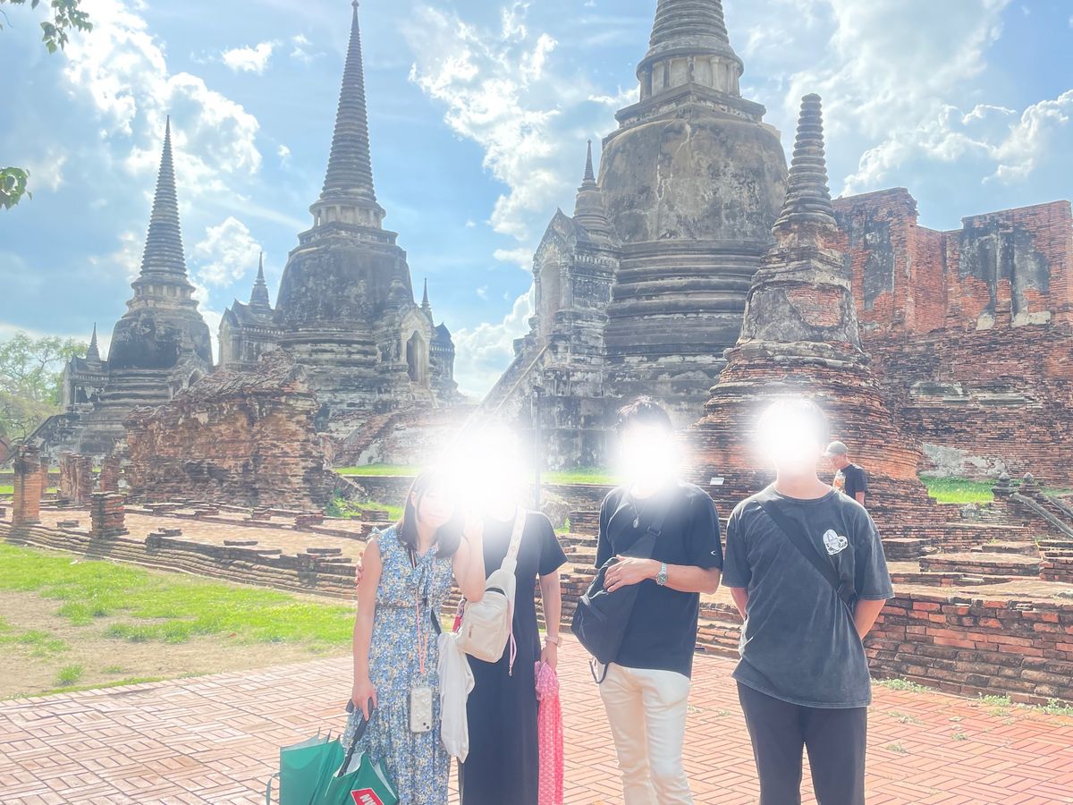 ひたすらに暑い長い一日でしたが、充実したツアー内容で楽しかったです。緑の天井の寺院は神秘的!アユタヤ遺跡は壮大でした。ピンクのガネーシャは平日の夕方だからか閑散としていて寂れた昭和の様でした。日本語ガイドの方、歴史的な話などたくさんしてくれて楽しかったです。が、撮ってくださった家族写真がどれもいまいち、なかなか二度とは行けない場所なのでもう少し丁寧に撮ってくれたら嬉しかったです。