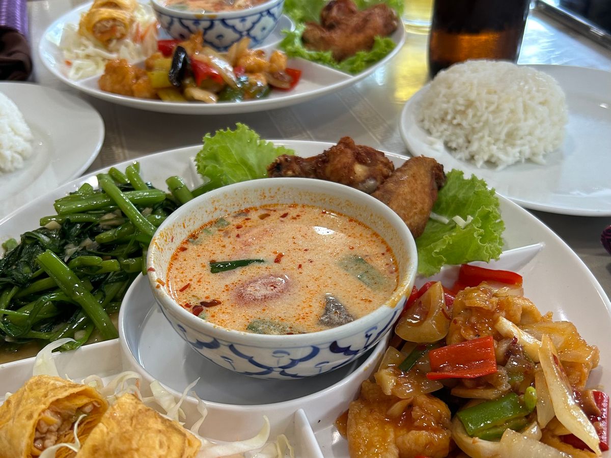 ランチはタイ料理、追加で蟹カレーを3名でシェアしました。このカレーが大正解◎別料金にはなりますがぜひ追加してほしいです。そしてスイカジュースもテイクアウト♪