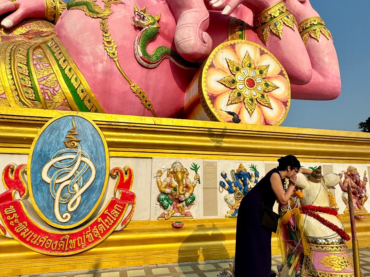 ものすごく暑かったですがガイドさんが傘を貸してくれて助かりました。ピンクのガネーシャも良くとれて他にもキャラクター?の写真スポットが沢山ありました。空港にかなり早くついたのでネットチェックインで荷物をあずけるときにガイドさんがテキパキやってくれたのと空港おすすめスポットを教えてもらい助かりました。ありがとうございました