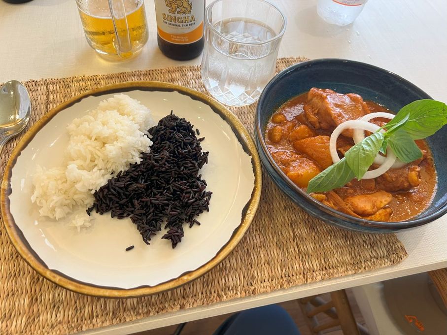 昼食付きプランを選びました。これが大正解でミシュランガイドにも載っているTHE LOCALでマッサマンカレーを食べるというものです。お米がジャスミン米の白いお米と黒いお米が選べるもので私は合い盛りにしてもらいました。店人さんの接客態度もよくてカレーも美味しく楽しい時間が過ごせました。