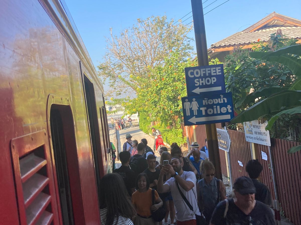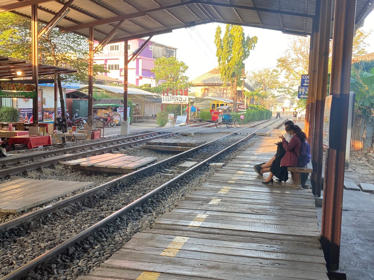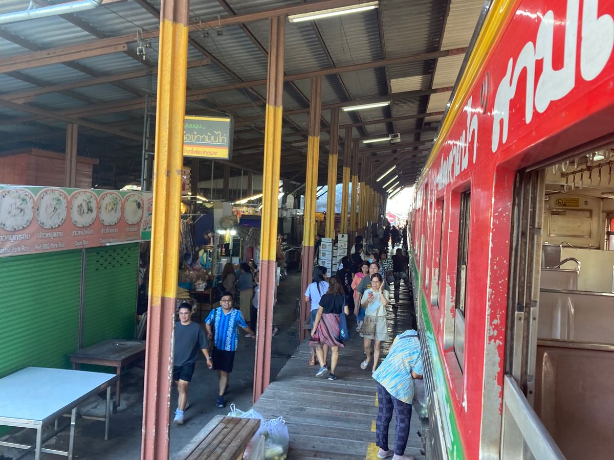 朝集合は早いですが、列車に乗れるツアーということで申込みました。ついてすぐに、朝食(タイ風 ラーメン、チャーハン、焼きそばから選択)をたべます。市場で散策して、8:30の列車到着を待ちます。赤い線の外側に立たないないといけないので、早めに立ち位置を確保した方がいいかもしれません。9:00発の折り返しの列車にのってい移動します。市場や田園風景を体験できてよかったです。ワット・パクナム、ドームがきれいでしたが、3大寺院と比較したら迫力がありません。もしいくのなら、3大寺院の前にいった方がいいかもしれません。