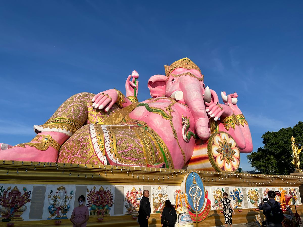 とても楽しみにしていたツアー。ホテルまでお迎えにきてくれたのでありがたかったです。当日は元日ということもあってか渋滞しており、急ぎ足での観光になり、念願のピンクガネーシャもじっくり見物!!とはいかず、さらーっと見る感じで、写真を撮っていたらガイドさんがどんどん先を行ってしまうこともしばしば、、。半日というスケジュールの中で焦っておられるのかなという印象でした。そんな中でも説明はしっかりしてくださっていたのでわかりやすく、勉強にもなりました。最後はホテルまで送り届けていただく予定でしたが、おすすめのショッピングモールを教えてくださり、そこで下ろしてもらいました。自分たちでは回りきれないところが効率よく回れるのがツアー。選んで本当によかったです。ありがとうございました。