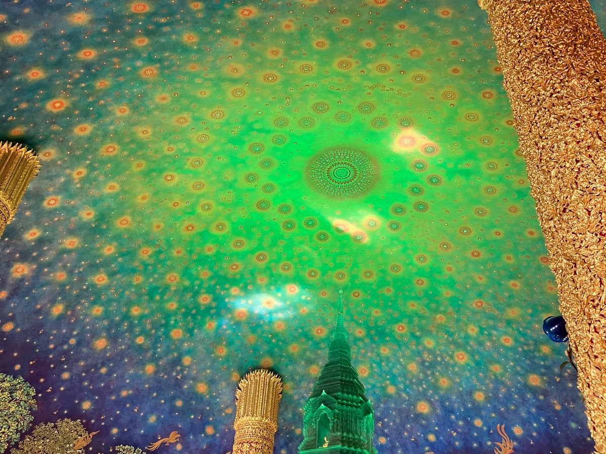 道が空いていたので、スムーズに2箇所とも行けて良かった。ワットパクナムは写真と同じで、とても美しかった。天井の装飾だけでなく、お寺の中全て煌びやかで見応えがあった。お寺のことについて、ガイドさんから色々教えてもらいたかったが、情報があまりに少なすぎた。日本語の発音が悪くて何を言っているのか聞き取れないことが多々あった。最後にナイトマーケットに下車したが、なんという駅なのか、どのようにホテルまで帰れば良いのか教えて欲しかった。ピンクのガネーシャは古びていて写真と全く別物だったので残念だった。