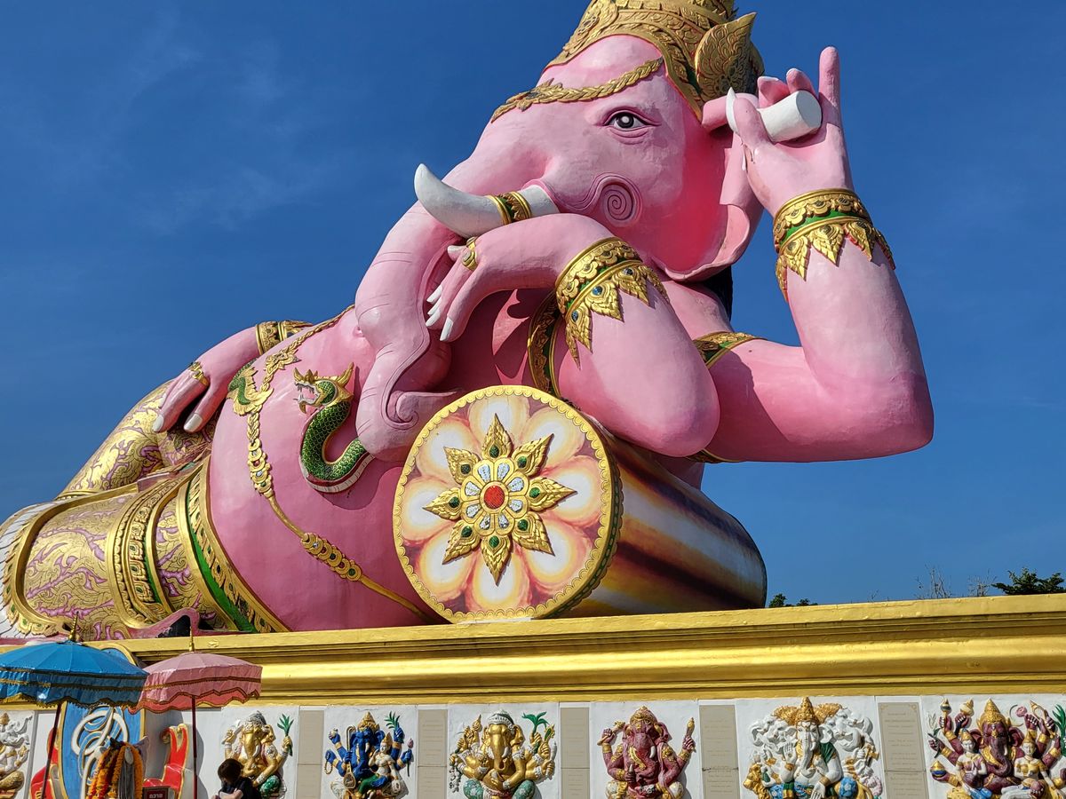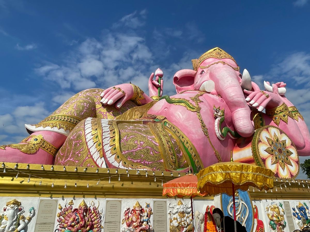 さて、当のピンクガネーシャですが、バンコク市内から車で1時間半程かかります。当初色々乗り継いで3時間以上かけて行こうとしていた事を考えると、予約して良かったと思います。