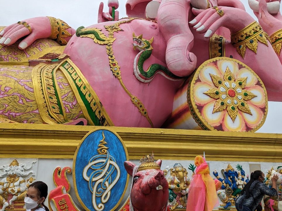 タイ在住の人から聞いていたピンクガネーシャを目的に参加。途中タイ国民がよくお参りする寺院にお参り。観光地化していない本当のタイの人々のお参りを知ることができた。そこから、まら結構な時間をかけ、ピンクガネーシャに到着。週末は混雑するらしいが、人もまばらでスムーズに見学。ここでもタイの人のお参りの仕方でお願い。落ち着いて見学できました。車の移動時間が長いのがマイナスポイント