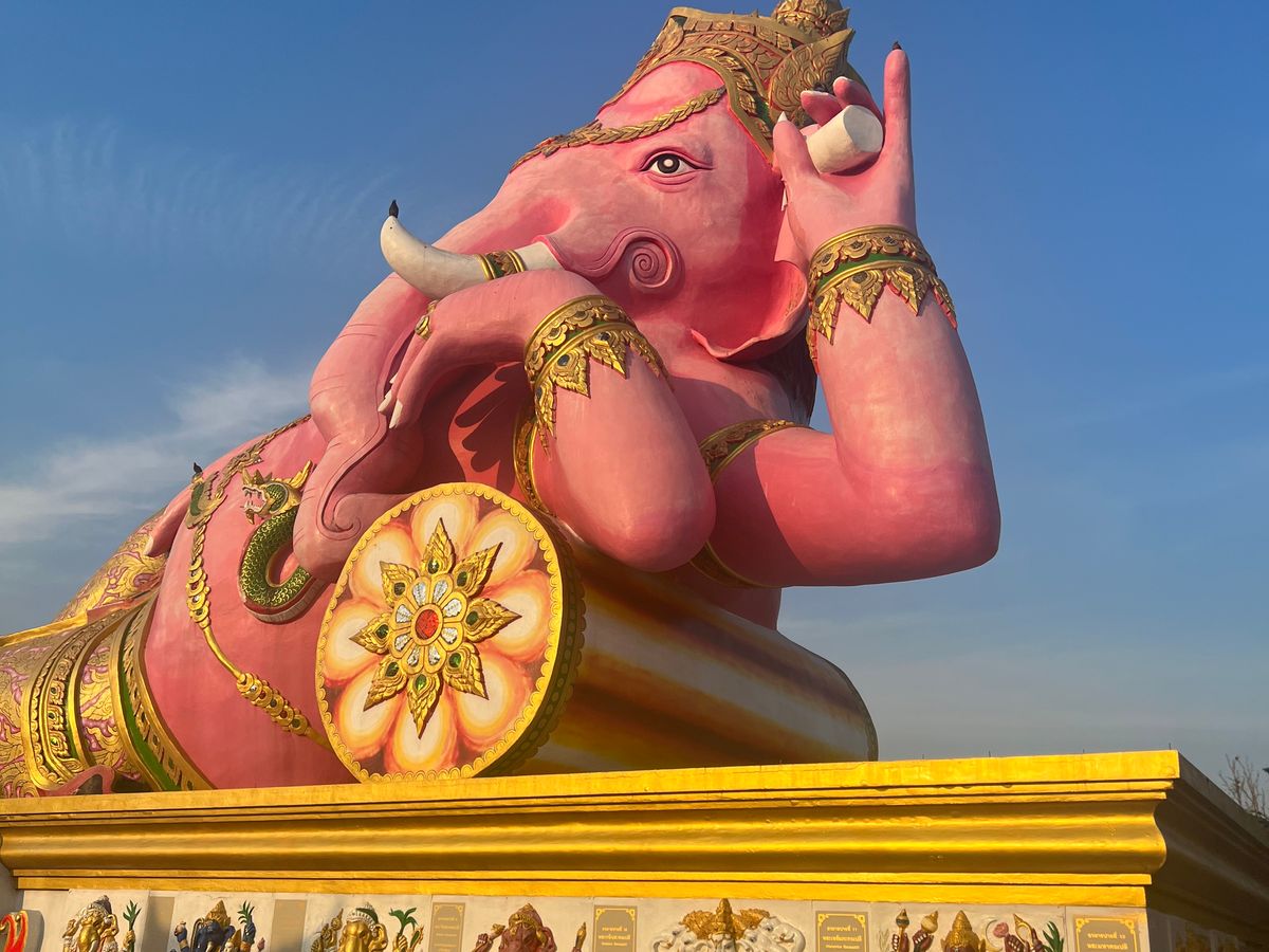 ピンクガネーシャ、ワットパクナーム、アユタヤ遺跡巡り、象乗り体験の1日ツアーに参加しました。