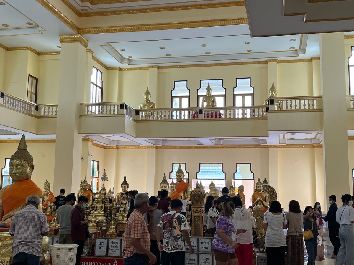ワットソートンではお参りの際に各々が自分の曜日の神様に金箔を貼ったり、大量の卵をお供えに持参する風習を教えて頂きました。