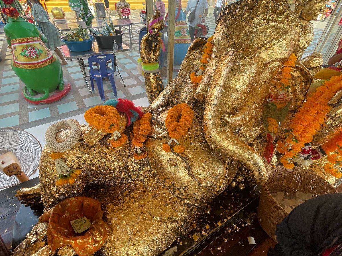 前日はアユタヤツアーに参加、翌日はこちらのツアーに参加しまた。ガネーシャはバンコク市内から離れているのでホテルの迎えが早く、高速で1時間半位かかりました。しかし、自力で行くには大変だと思いました。バンコクに戻ってからも三大寺院や王宮と効率よくまわり、昼食のレストランも素敵なところでした。移動のワゴン車内も各自マスク着用、そして、偶然なのか、2日間同じガイドのコップさんにお世話になりました。こちらの質問にも丁寧な説明をしてくださいました。