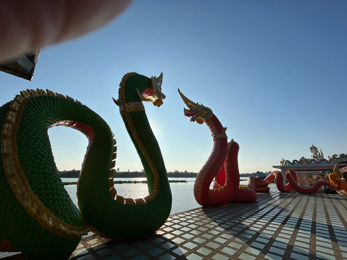 次はワットパクナムへ。「怪しげな宗教?」なんて先入観がありましたが、れっきとした仏教寺院で、あまりの美しさに感動しました。