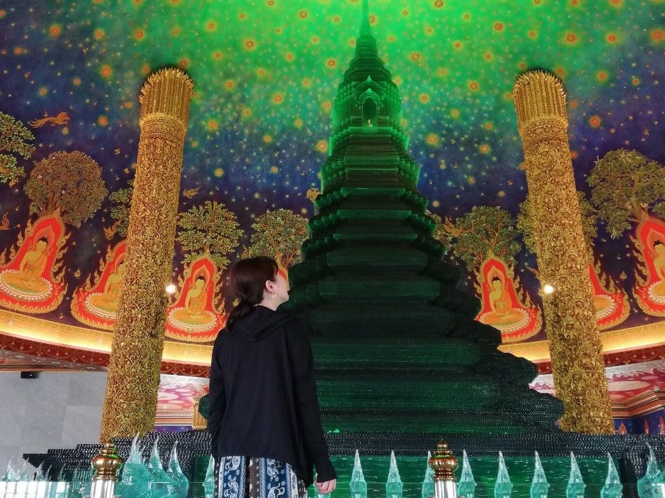 バンコク郊外のフォトジェニックな二箇所を効率的に回れて良かったです。ワットパクナムは幻想的な宇宙を見ているようでとても綺麗でした。ピンクガネイシャは、単体としては良いと思いますが、そのお寺には色んな銅像が目白押しで、中にはアニメの主人公など全く関係のない像が多くあり、観光地化していました。そこがちょっとげんなりしましたね。