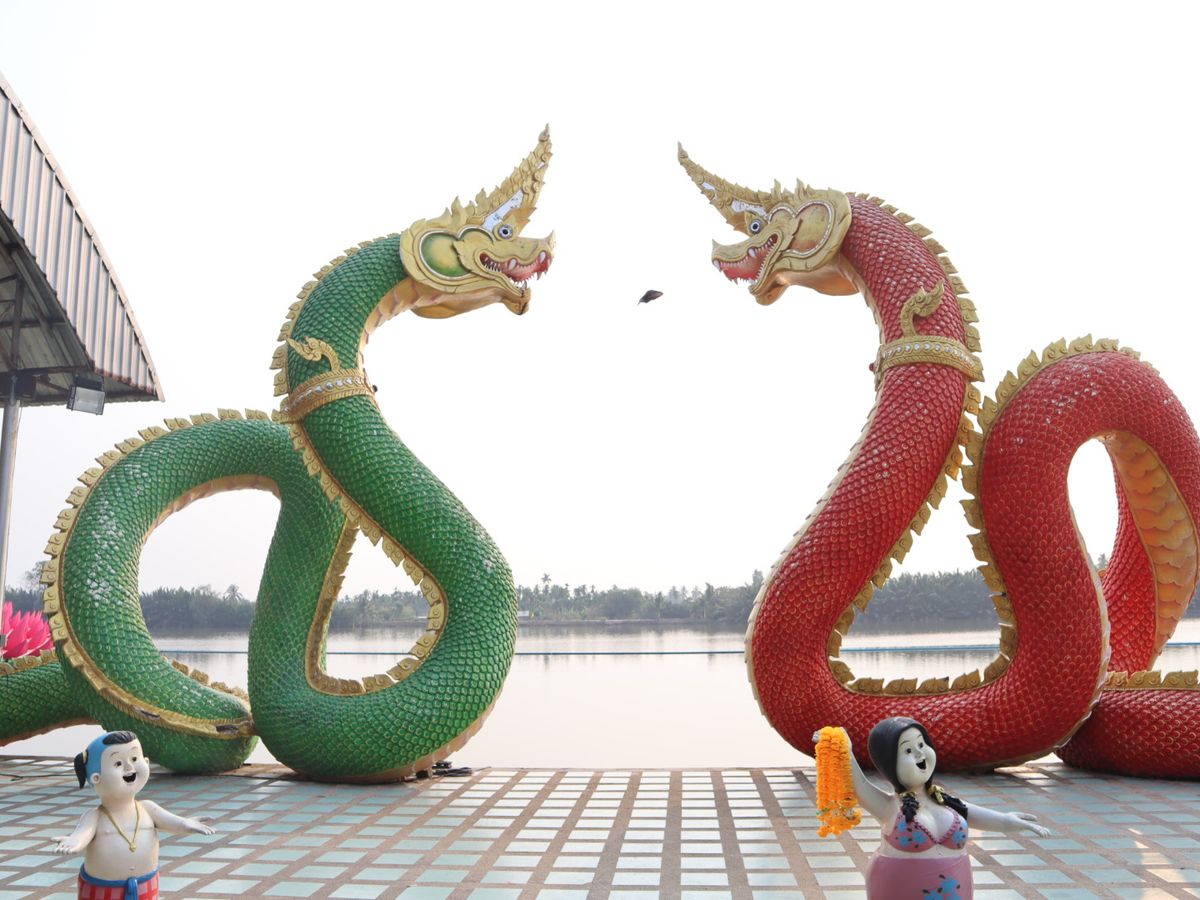 新型コロナウイルスの影響で、観光客自体が少ない時期だったので、予約したツアーに参加したのは私達二人だけでした。ホテルのピックアップ時間が6時とかなり早く、ホテルの朝食が食べられなかったのが残念でしたが、早朝だったおかげで道も空いていてピンクガネーシャに早く着いたので、ほぼ貸し切り状態でした。ガイドブックには、自分の生まれた曜日の色のネズミの耳に願い事をすると良いと書かれていましたが、ガイドさんが説明してくれたのは、ピンクガネーシャの前に置かれた二匹の黄色いネズミの耳に…とのことでした。私達は念のため、その黄色いネズミと自分の生まれた曜日の色のネズミ両方にお願いして帰りました。ワットパクナムの方も観光客はそんなに多くなく、写真を撮るのにも並ぶことはなかったです。写真でみるよりはるかに綺麗だったので、バンコクに行ったらぜひ一度は訪れてほしいスポットだと思いました。