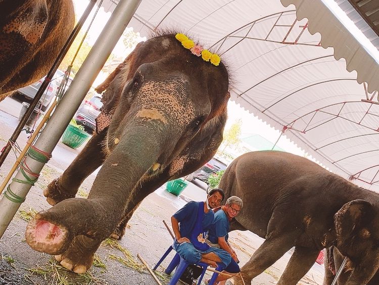 またピンクのガネーシャでは、コロナ禍の影響で、お寺で象を預かっていたため、思わぬ象とのふれあい体験(餌やり)ができて、楽しい時間を過ごせました。