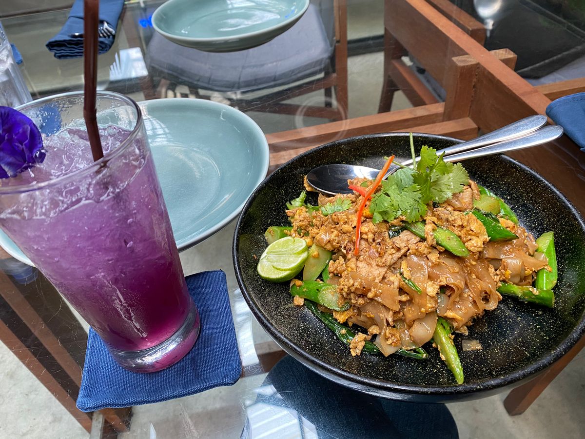 人気店のパッタイは 蟹が無くて残念…エビパッタイに。もう少し麺が硬くても良かったですwブルーホエールは メニューは聞かれず1択。店内も見たかったので 外で待つ様言われましたが 入って行っちゃいましたw目で楽しむものですね。あとで調べたら 効用が色々興味あったので 市場で茶葉を購入しました。