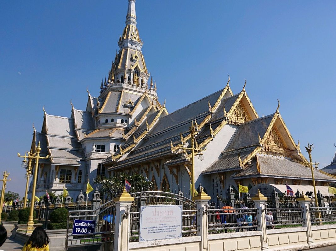 ガイドさんは時間厳守の予定10分前にホテルに来て頂き幸先良いスタート。繁忙期だけ契約して働くと言う年配の女性ガイドさんでした。バンコクから片道約1時間半の移動中は色々な話を聞かせて頂きました。ワット・ソートンに到着、雲一つない晴天の下で白く輝く寺院はまるで芸術品のようで外観も内観もすばらしく感動しました。現地の参拝者が多く観光客はほとんどいませんでした。滞在時間は30分程度だったと思います。