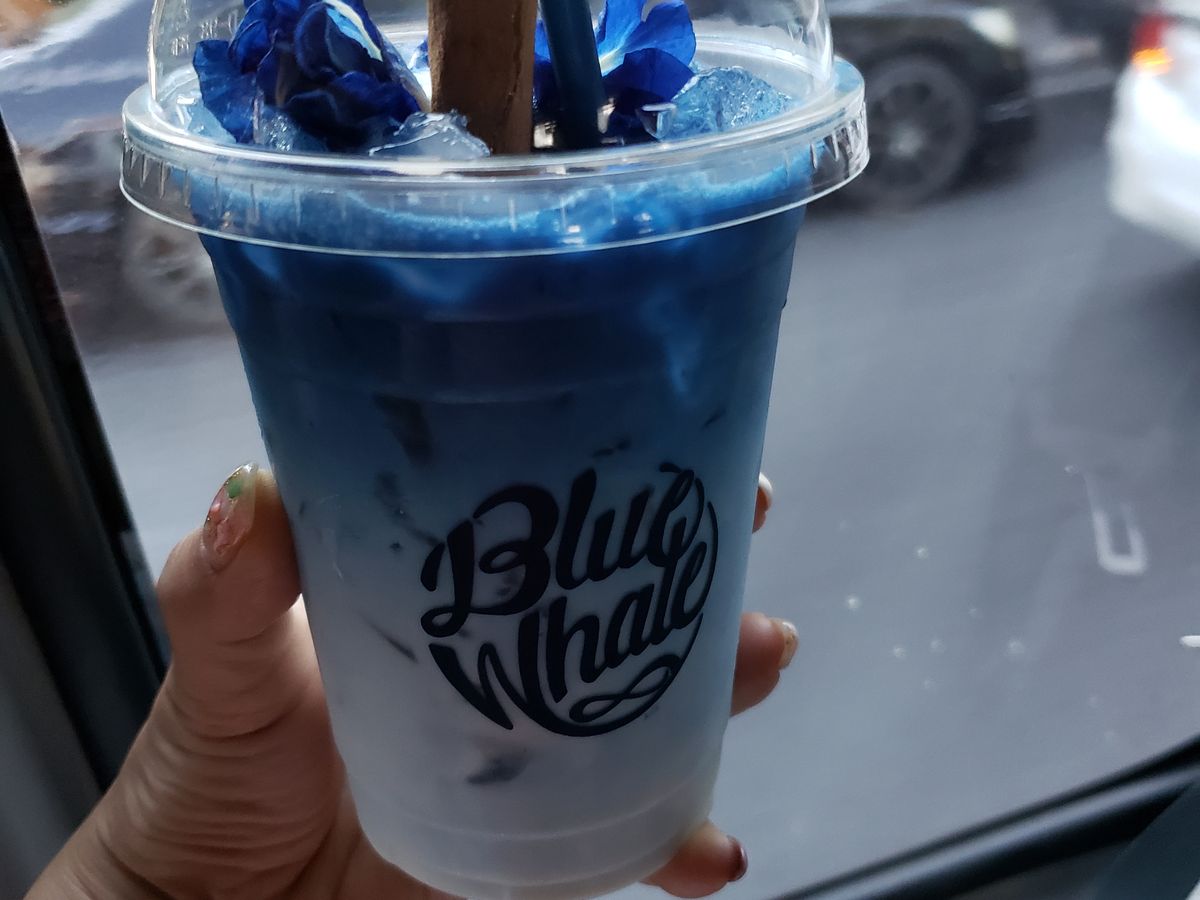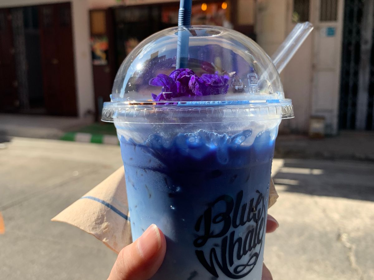 午後からは私たちだけでしたが、行ってみたかったワットポーとその近くのバタフライピーのラテのお店へ。ホットとアイスが選べるとのとこでしたが、ガイドさんが問答無用でアイスを頼んでおいてくれていました。暑かったので、ちょうどよかったです。他の口コミにもある通り、お持ち帰りでしたが、お店の中でラテの写真を撮ることができたので、満足です。
