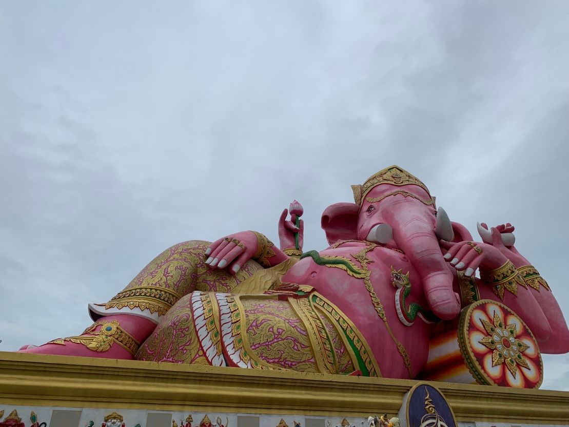 ようやく取れた休みに、タイミングよく手に入った航空券がバンコクでした。ここのところ忙しく過ごしていたため頭も身体もヘトヘトで、自分で現地の行動計画を立てる気力もわかないまま出発の日だけが近づいていました。勤め帰りにたまたま目にしたガイドブックの表紙にピンクのガネーシャ。あまりにも怪しすぎて、これはひとつ観ておかねばならぬと思い、現地ツアーを検索して探し出しました。